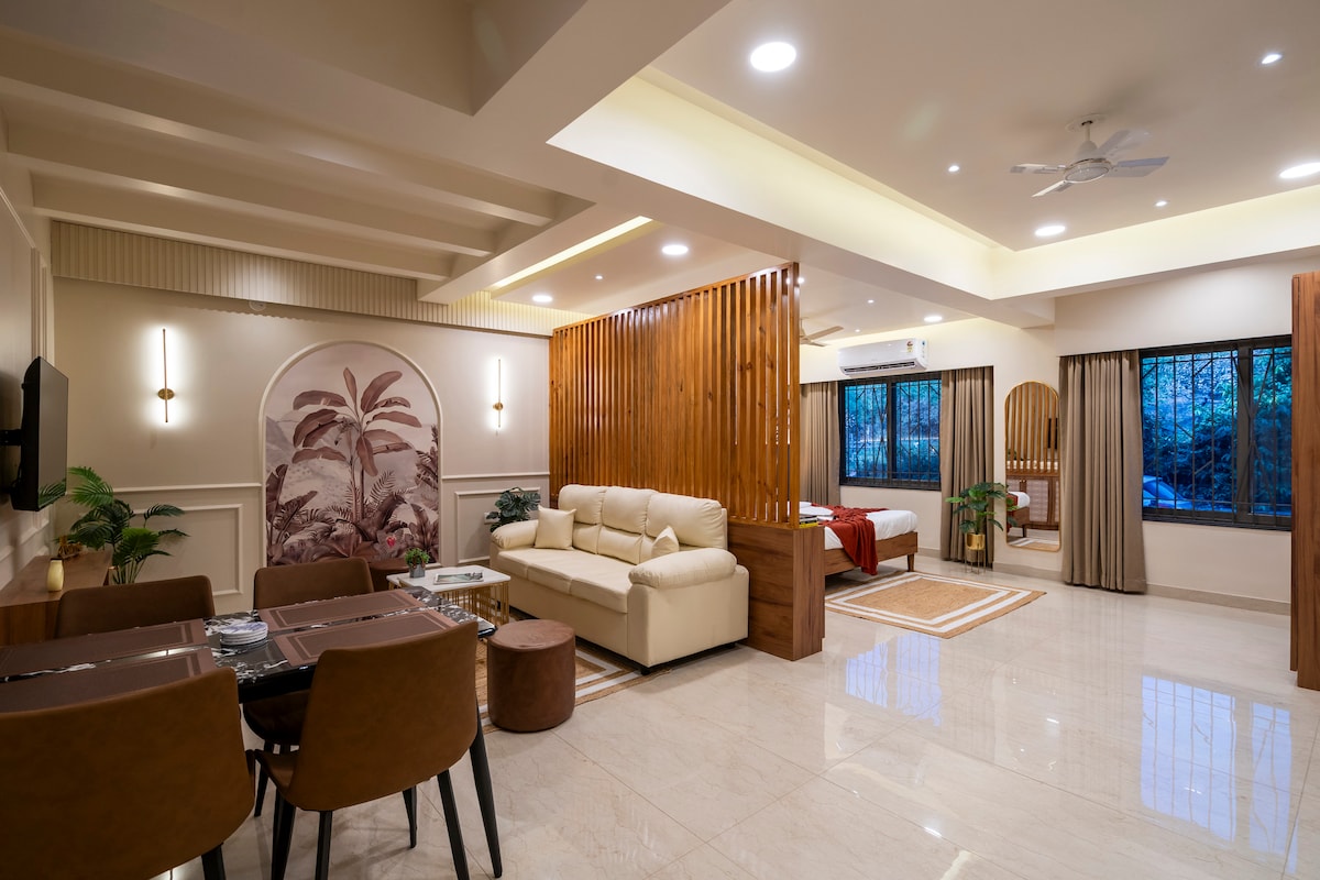** Ayrıca Cakuzisi olan rahat 1BHK mənzil ** Rahatlıq və dəbdəbənin mükəmməl qarışığı olan füsunkar 1BHK mənzilimizə qaçın. Geniş yaşayış məkanında dincəlin, yaxşı təchiz olunmuş mətbəxdə dincəlin və öz şəxsi cakuzinizdə cavanlaşın. Yerli turistik yerlərdən cəmi bir neçə dəqiqə uzaqlıqda müasir imkanlardan, dəbli dekorasiyadan və rahat atmosferdən zövq alın. Romantik tətil və ya tək istirahət üçün burada olmağınızdan asılı olmayaraq, bu mənzil sizin ideal sığınacağınızdır. Unudulmaz qonaqlama üçün indi bron edin.