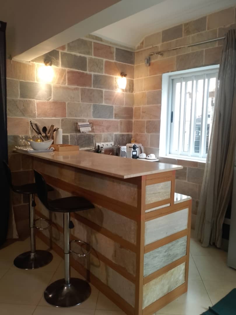 Welcome to this modern and spacious studio apartment in Cotonou— your perfect home away from home in a quiet, safe neighborhood. Enjoy a fully equipped kitchen, a cozy living area with comfy sofas and a smart TV, a dining table, and a private bedroom and bathroom. The space is bright, clean, and thoughtfully designed for relaxation or work. This beautiful appartment is pnly a short drive from the airport, it's close to upscale restaurants in Haie vive and also near supermarkets and shops