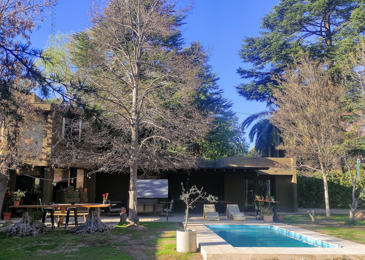 Ev Plaza de Chacras-dan bir neçə blokda və bir neçə xidməti olan yaşayış sahəsində yerləşir. Yoxlama Calle Medrano tərəfindən edilir, alma ağacı bağını birləşdirən avtomatik darvaza və köhnə oyuqlu xiyaban vasitəsilə. Evdə isti məkanlar, kral çarpayısı və şotland duşu olan vanna otağı var. Təchiz olunmuş mətbəx, çurrasquera, odunla işləyən ev, mini hovuz və yaxşı səs sistemi. Şərab Marşrutu, Los Andes Dağları və Rio Mendozaya cəld giriş.