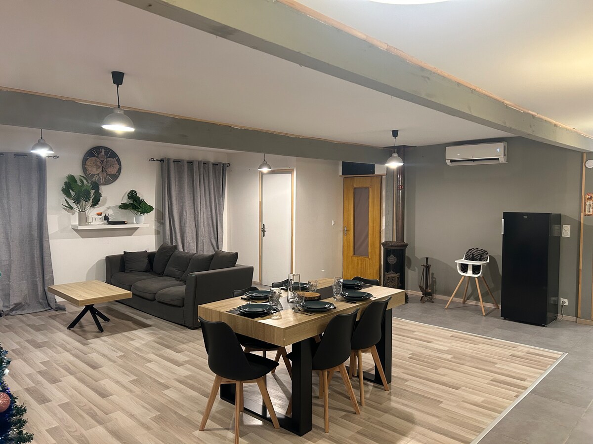 2 hektarlıq özəl parkın mərkəzində cazibədar dağ evi kimi təmir edilmiş keçmiş özəl helikopter meydançasında qonaqlayaraq ailə və ya dostlarla unikal təcrübədən zövq alın🌲🍀 Bəlkə də terasanız uçuş zolağıdır❓🚁 Çoxsaylı imkanlarımız sayəsində əyləncə və rahatlıq zəmanət altındadır: - Qapalı hovuz 🏊♂️ - Cakuzi 🛁 - Oyun zalı 🎰 - İdman zalı 🏋️♂️ - Petank 🥇 - Oyun meydançası 🤼♀️ 🏸⚽️🏐 - Eşşəklər, donuzlar, qoyunlar, toyuqlar, itlər, pişiklər olan mini ferma 🐶🐷🐴🦮🐈