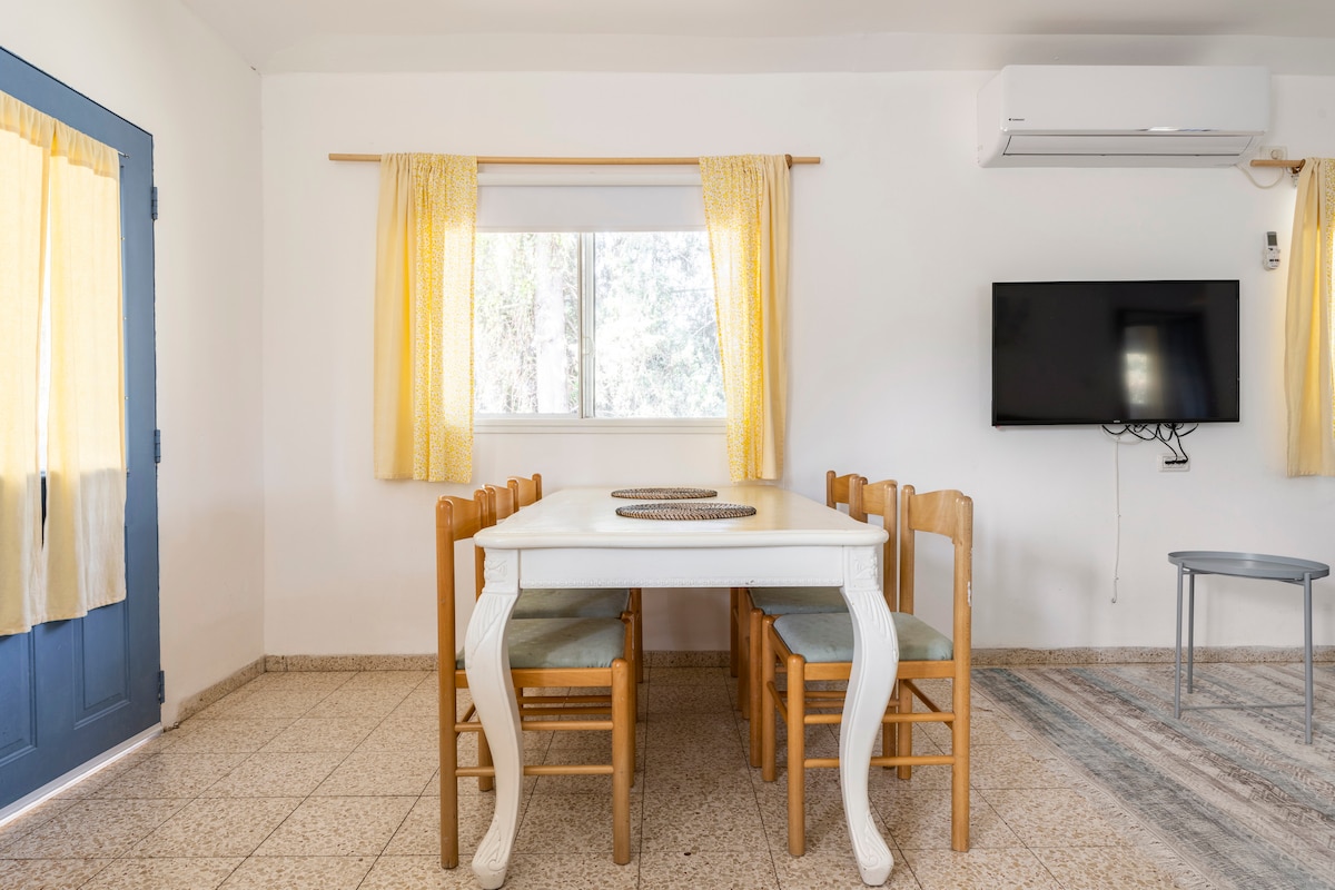 Təbiətin mərkəzində yerləşən yaşayış yeri - sehrli Qolani mənzərəsi ilə üzbəüz. Mülkdə ehtiyaca görə bir və ya iki yataq otağı var və 9 nəfərə qədər cütlüyə/ailəyə ev sahibliyi etmək üçün uygundur. Mənzildə yemək bişirmək və yemək qabları, soyuducu, soba, soba, mikrodalğalı soba, çaydan və kapsullu qəhvə maşını ilə tam təchiz olunmuş mətbəx var. Əsas yataq otağında ikinəfərlik çarpayı və televizor var. Qonaq otağında iki nəfərlik çarpayıya çevrilən divan və televizor var. 6-dan çox qonaq - iki tək çarpayı və dostun çarpayısı olan qorunan məkan da var. Məkanımızda müxtəlif kitablar, oyuncaqlar və stolüstü oyunlar var. Çöldə baxımlı bağ, qazon, bağ yelləncəyi, qazlı barbekü, gözəl mənzərə və tam məxfilik olan böyük həyət var.