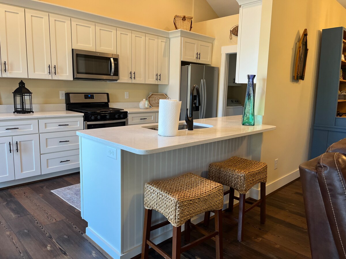 Yüksək Qaya gölündə yeni tikilmiş (iyul 2021-ci il) 2 yataqlı, 2 yataqlı evimizdə lüks gölkənarı yaşamağı təcrübədən keçirin. Ayrıca iskele və 1 kayak + avarçəkmə ilə şam yeməyini üyütməzdən və od çuxuru ilə dincəlməzdən əvvəl suda bir gündən zövq alın. 70" ağıllı televizorda sevdiyiniz şouları izləyin və ya kral çarpayısında yatmaq üçün sürüşdürün. Şişirdilə bilən kraliça döşəyi ilə maksimum 6 qonaq rahat qonaqlamadan zövq ala bilər. Şimali Karolinanın gizli incisini, Yüksək Qaya Gölünü rahatlıqla araşdırın!