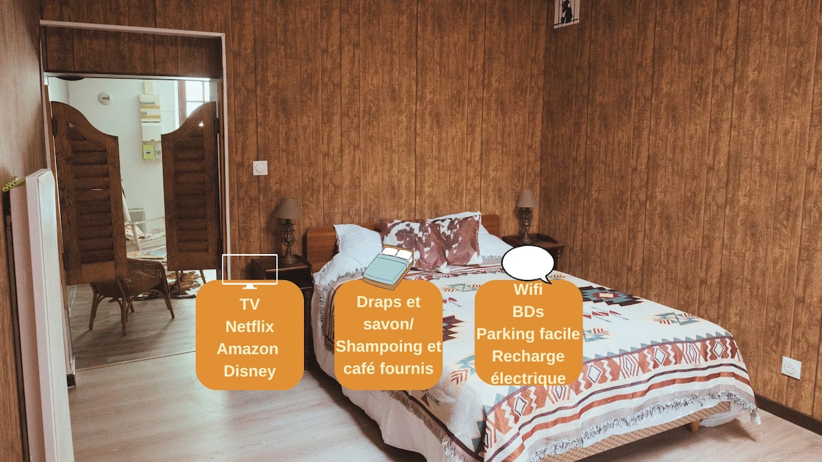 İşgüzar səfər, ziyarət, ailə birləşməsi və ya festivalda iştirak etmək üçün tətil axtarırsınız? Angoulême və ya onun ətrafında bir neçə gün sülh məkanı axtarırsınız? Bu füsunkar və rahat studiya tam olaraq sizə lazımdır. Hər şeyə yaxın olan füsunkar studiyamız zərifliyi və imtiyazlı mövqeyi ilə diqqət çəkir. Öz-özünü yoxlama xidməti yaşayış yerinə müstəqil şəkildə giriş imkanı verir. Sadəcə çamadanınızla gəlin.