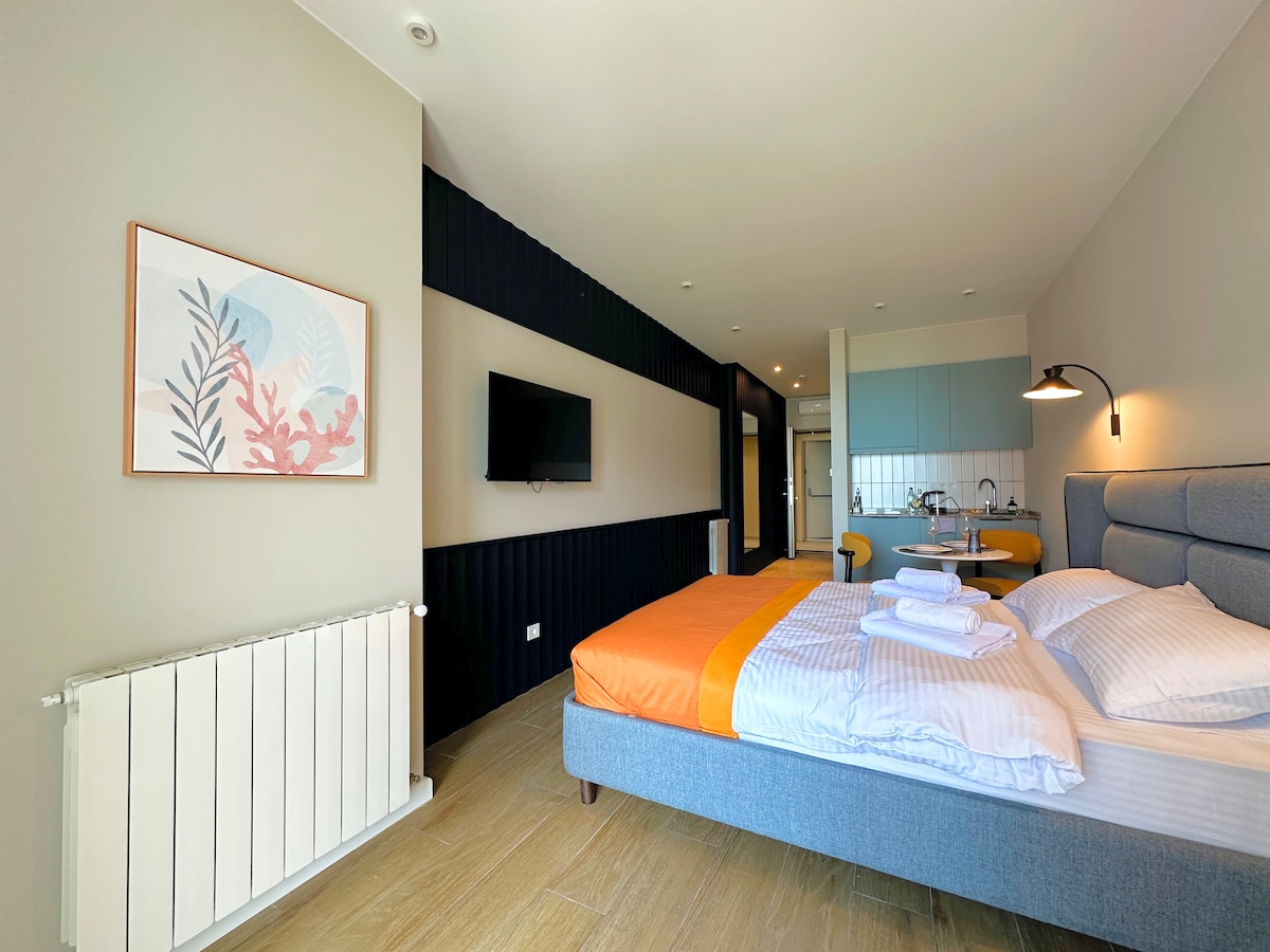 Müəssisəmiz sadə və zərif rənglərlə bəzədilib. Burada yaşamaq üçün lazım olan və şəhərin mərkəzində yerləşən hər şey var. Biz yalnız dəniz deyil, həm də şəhər, göl və dağ mənzərələri təklif edirik. Eyni zamanda qonaqlarımızın ləziz gürcü şərabı, pendir və desert də daxil olmaqla yerli delikateslərdən pulsuz dadmaq imkanı var. Müəssisəmiz yenidir və ilk qonaqlarımız üçün xüsusi sürprizlərimiz olacaq.