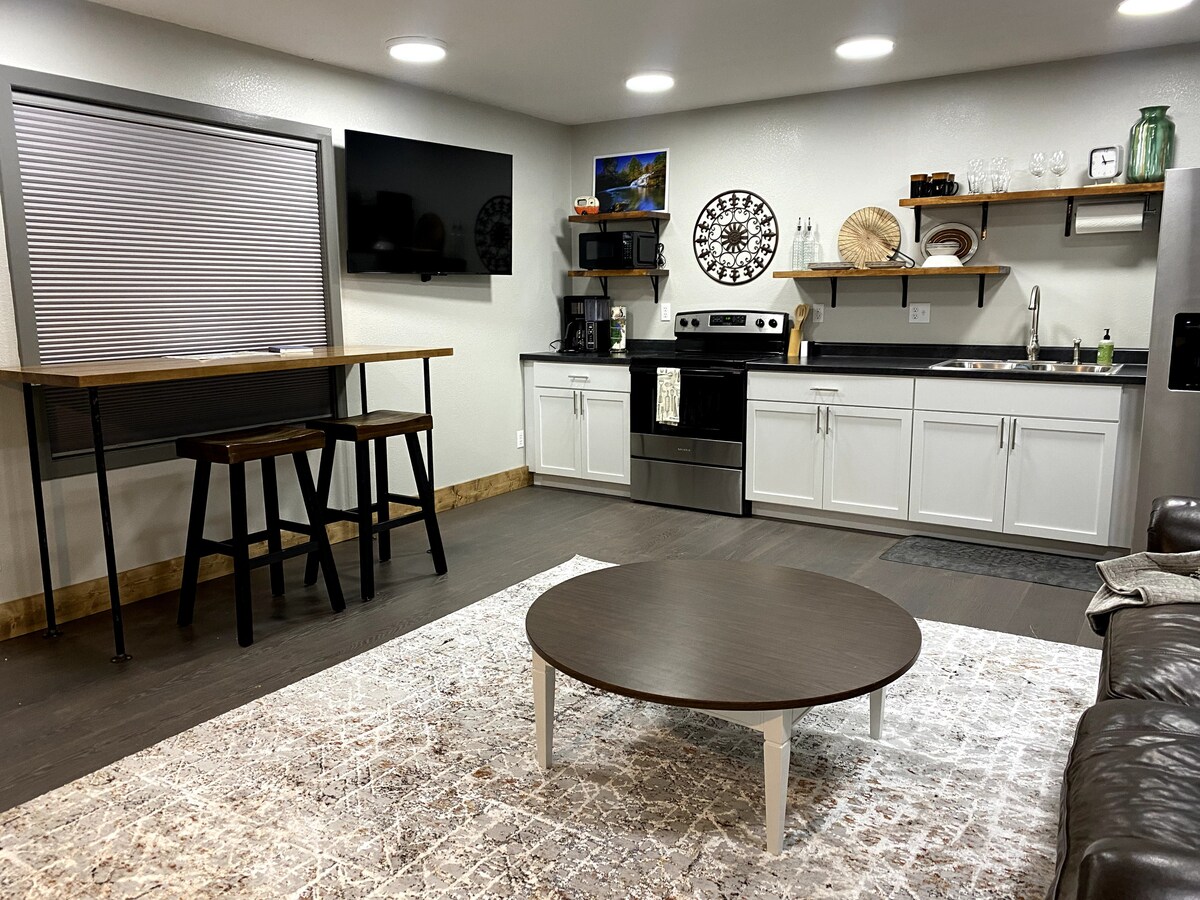 Şon Milli Meşəsinin kənarında yerləşən evcik. Tam dolabı və yığılmış paltaryuyan və quruducusu olan rahat bir yataq otağı tam ölçüdədir. Soba, soyuducu və mikrodalğalı soba olan mətbəx. Qabyuyan maşını yoxdur. Qonaq otağında Netflix, Sling, YouTube TV və s. ağıllı televizor işarəsi var. Wi-fi verilir. Kabel yoxdur. Duş kabinəsi olan tam vanna otağı. Bəzi qonağımız eyvanda oturaraq hər gecə gözəl gün batımlarını seyr edərək bizimlə qalmaq üçün əlavə bonus olduğunu bildirib.