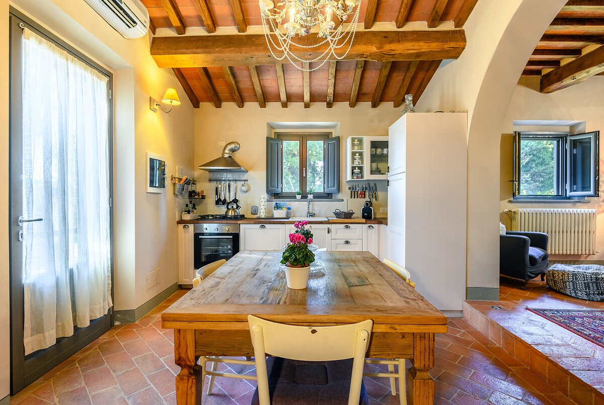 Spend a holiday in the heart of the Tuscan countryside in this cozy stone house with terracotta floors and beamed ceilings in solid oak, furnished with paintings of author , equipped with all comforts. Enjoy yourself by swimming in the large infinity pool (18m X 9m, open from May 1st to October 15th for guests of Stone house use only) or relax in an armchair under the loggia, tasting a glass of Chianti wine in front of the rolling hills of vineyards, olive groves, woods and medieval villages.