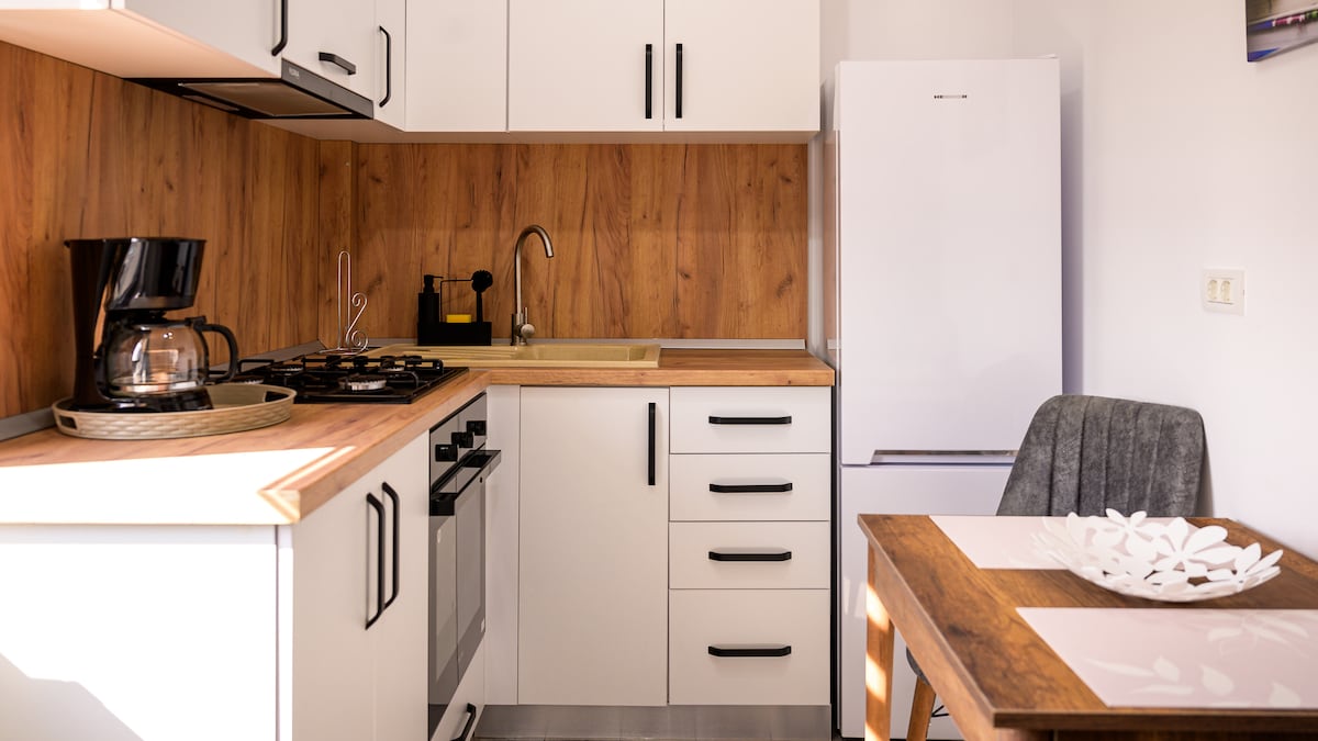 Şəhər mərkəzinə yaxın çox sakit bir ərazidə xoş atmosfer. Yeni mebel, quraşdırılmış mətbəx (soba, başlıq, soyuducu, qabyuyan maşın, qab-qacaq və çəngəl-bıçaq) mikrodalğalı soba, paltaryuyan maşın, kondisioner, Netflix ilə ağıllı televizor, yüksək sürətli Wi-Fi interneti yoxdur. İkinəfərlik çarpayısı olan bir yataq otağı və bir nəfərlik çarpayısı olan bir yataq otağı (açıla və iki birnəfərlik çarpayıya çevrilə bilər), yataq dəstləri və dəsmallar daxildir. Küçədə pulsuz parkinq. Ərzaq mağazası în binanın qarşısında.