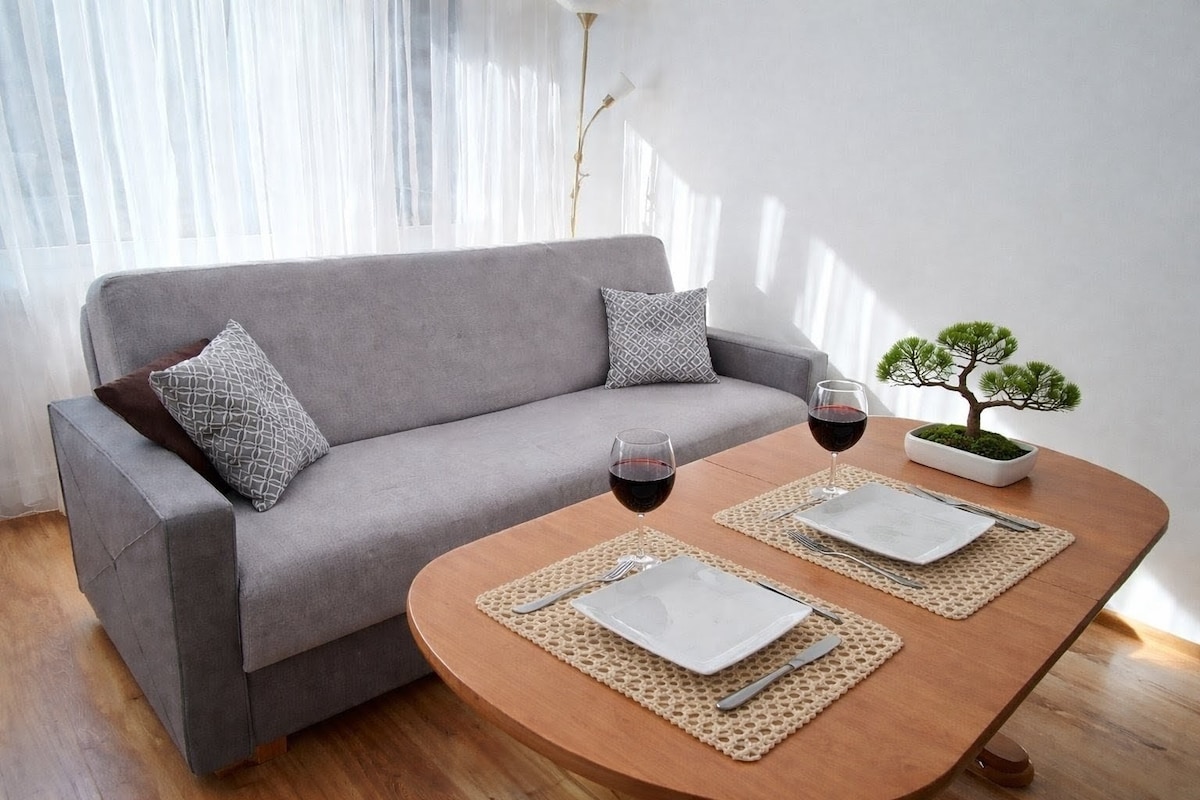 Krynica şəhərinin mərkəzində, şəhər səmasının, dağların və xizək yamaclarının heyrətamiz mənzərəsi olan məşhur promenadanın düz yanında yerləşən gözəl, yeni mənzil. Burada qonaqlamanız üçün orijinal dekorasiya və rahat şərait təklif olunur. Sahəsi 43 m2 olan DİZAYNER İNCƏSƏNƏT mənzilində balaca mətbəx , geniş hamam otağı, ayrıca tualet , balkon və pulsuz yeraltı parkinq, xizək otağı və velosiped otağı var. Rahatlıq üçün; - Netflix, AĞILLI TV, Wi-FI - Sürətli giriş - təhlükəsizlik.