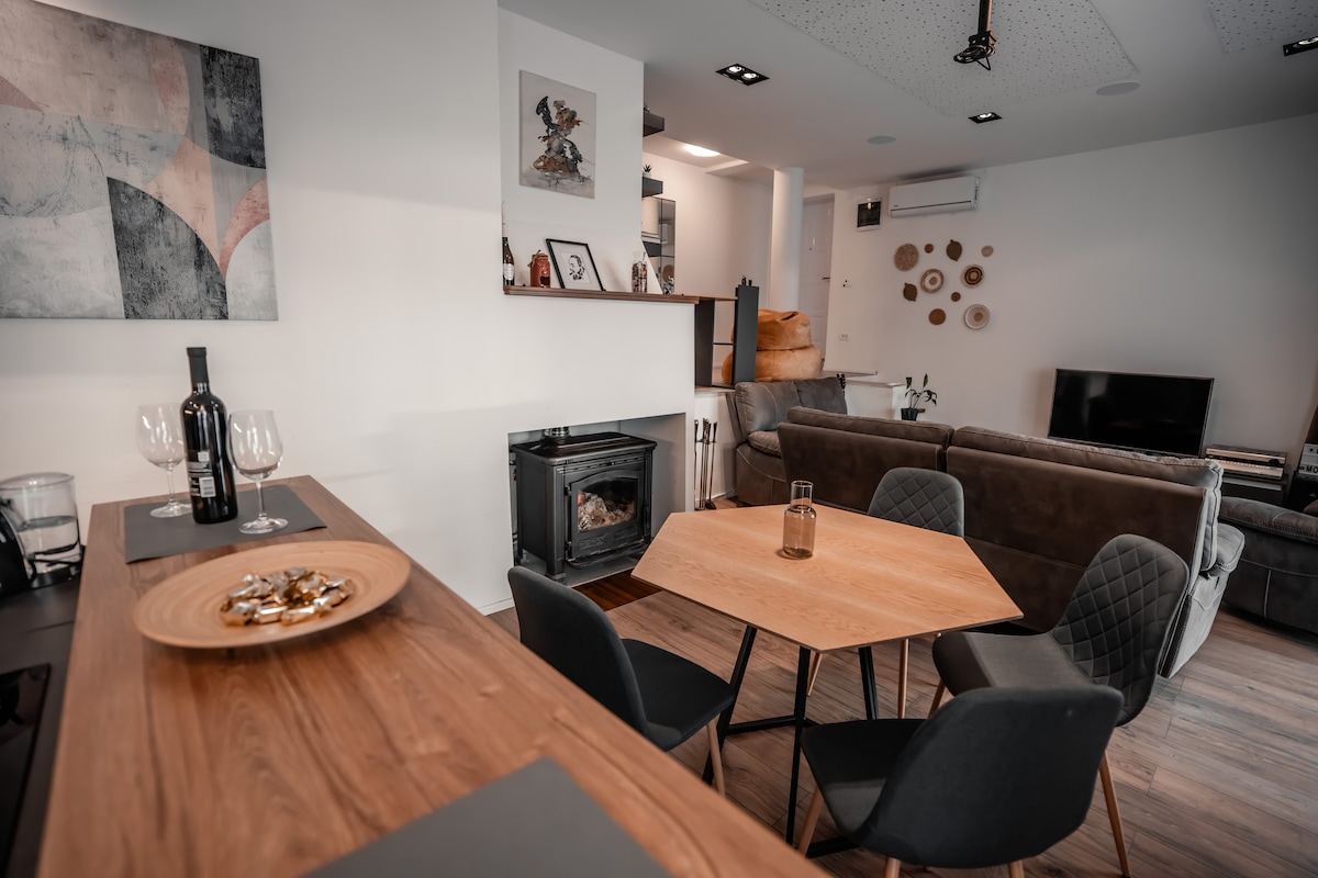 Villa Serenity is a 100 m² home that offers stylish comfort, a large patio with gazebo, sun beds and a dedicated workspace for remote work. Enjoy morning coffee on the deck, cozy evenings by the fireplace, or outdoor adventures and hiking, a peaceful escape for work or relaxation. Experience unforgettable movie nights with a true home theater feel with high quality surround sound and a large cinema wall projector. Book now for an unforgettable escape from the everyday!