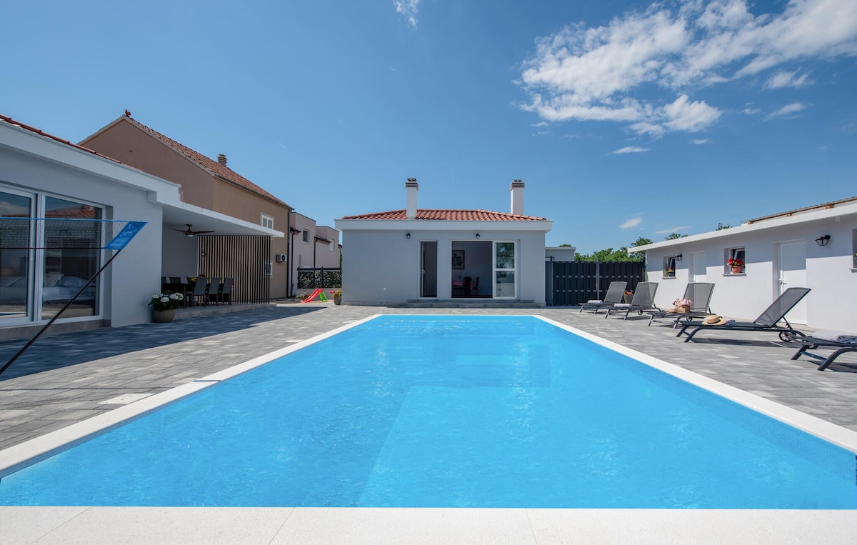 Qızdırılmış hovuzu, cakuzisi və saunası olan bu gözəl villa vadidə nəfəs kəsən mənzərəsi olan uzaq və tənha mənzərədə qurulub Aprel-noyabr aylarında qızdırılmış hovuz Dincəlmək üçün əla yer və regionu və Xorvatiyanı kəşf etmək üçün başlanğıc nöqtəsi! Şəhər məsafəsi Zadar 28 km (hava limanı 20 km) məsafədədir Šibenik 50 km uzaqlıqdadır Split 125 km (hava limanı 99 km) uzaqlıqdadır Gəzinti məsafəsi 125 km məsafədə Plitvice gölləri Krka 45 km məsafədə Kornati 30 km uzaqlıqda