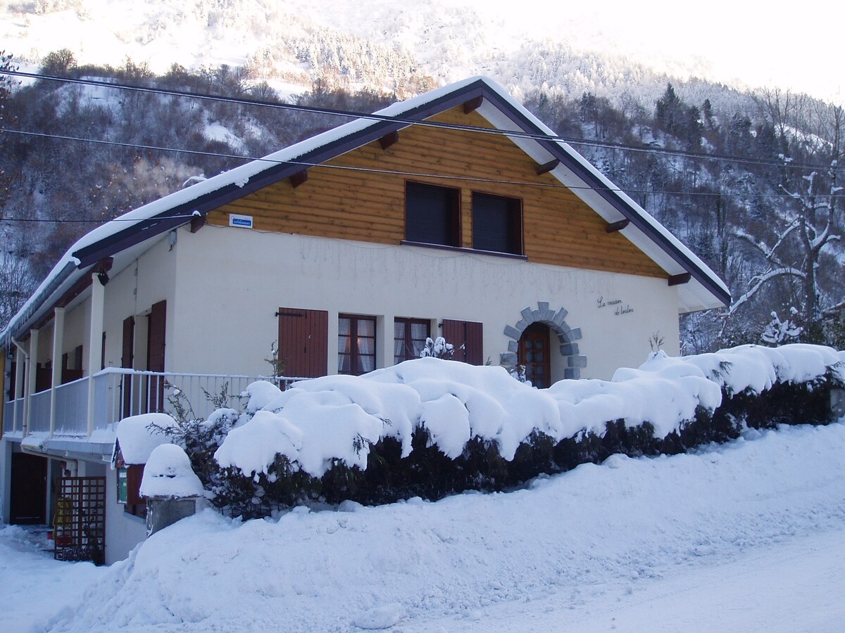 Yay və ya Qış, məsələn, uşaqlı 2 cütlükdürsə, MAKSİMUM 6 böyük 8 nəfəri yerləşdirmək üçün hər bir rahatlığı olan tam təmirli və təchiz olunmuş dağ evimizdə məkanın sakitliyindən zövq alın. Bütöv dağın panoramik mənzərəsi olan qapalı bağından və böyük taxta terrasından zövq alacaqsınız. Xizək otağı və ayrıca parkinq yeri mövcud olacaq. MINIMUM bron: 2 gecə Sorğunuzu əvvəlcədən @ ünvanına göndərməkdən çəkinməyin.