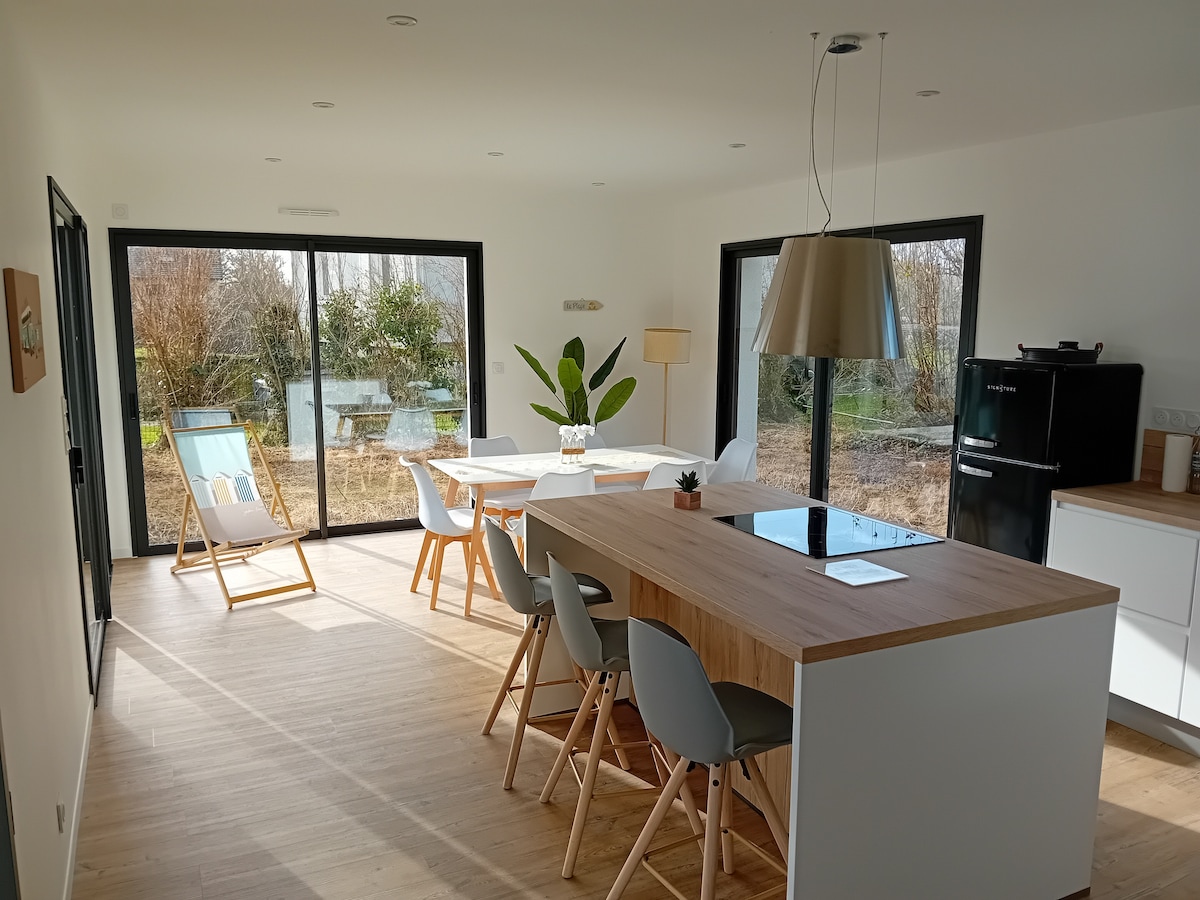 2024-cü ilin müasir evi Mebelli 4-ulduzlu turist yaşayış yeri * Normandiyada dənizdən 2 km, dükanlardan isə 300 m məsafədə yerləşən 2023-cü ildə tikilmiş bu yeni icarəni bron etmək üçün artıq gözləməyin. Tamamilə yenilənmiş və müasir üslubda olan ev sizi dənizə yaxın tətiliniz üçün 5-ə qədər qarşılayacaq. Eniş çimərliklərinə yaxın, Mont Sent-Mişel, Aqon-Kouteynvil, Şimali Kotentin, Anqlo-Norman adaları...