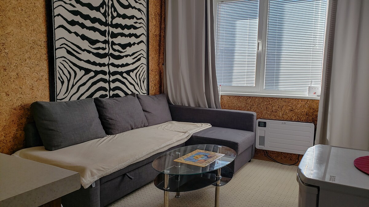 Bu, 2 divan çarpayısı, mətbəxi və böyük balkonu olan studiyadır. İkiqat çarpayı yoxdur, lakin divan çarpayıları onun qədər rahatdır. Gəlin və Rila dağının gözəlliyini hiss edin. Yürüyüşə və ya xizək sürməyə və ya sadəcə təbiət qoynunda dincələ bilərsiniz.