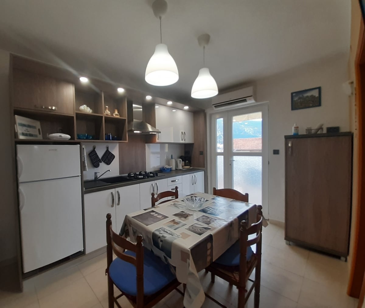 Çimərliyə yaxın, kiçik binanın ikinci mərtəbəsində (üst mərtəbə) yerləşən günəşli mənzil. Binanın qarşısında pulsuz ayrıca parkinq yeri var. Mənzil Panoramasında iki yataq otağı, tam təchiz olunmuş mətbəx, qonaq otağı, hamam otağı və dəniz mənzərəli balkon var. Əmlakın hər yerində pulsuz WI FI mövcuddur. Ən yaxın çimərlik piyada 3 dəq məsafədədir. Şəhər mərkəzi piyada 10 dəq məsafədədir. Velosipedləriniz üçün yerimiz var.