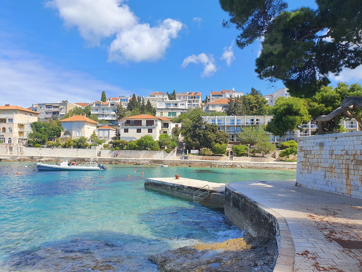 Stari Qradın tarixi mərkəzində yerləşən ecazkar istirahətinizə xoş gəlmisiniz! Dinc "Molo Selo" ərazisində yerləşən zərif dizaynlı açıq məkan mənzilimiz müasir imkanlarla tarixi cazibədarlığı gözəl şəkildə birləşdirir. Səhərlərinizi Dalmatiya üslublu barbekü ilə tamamlanmış yamyaşıl eyvanın dərin kölgəsində başlayın. İndi bron edin və dəniz kənarında unudulmaz xatirələr yaradın! 🐚