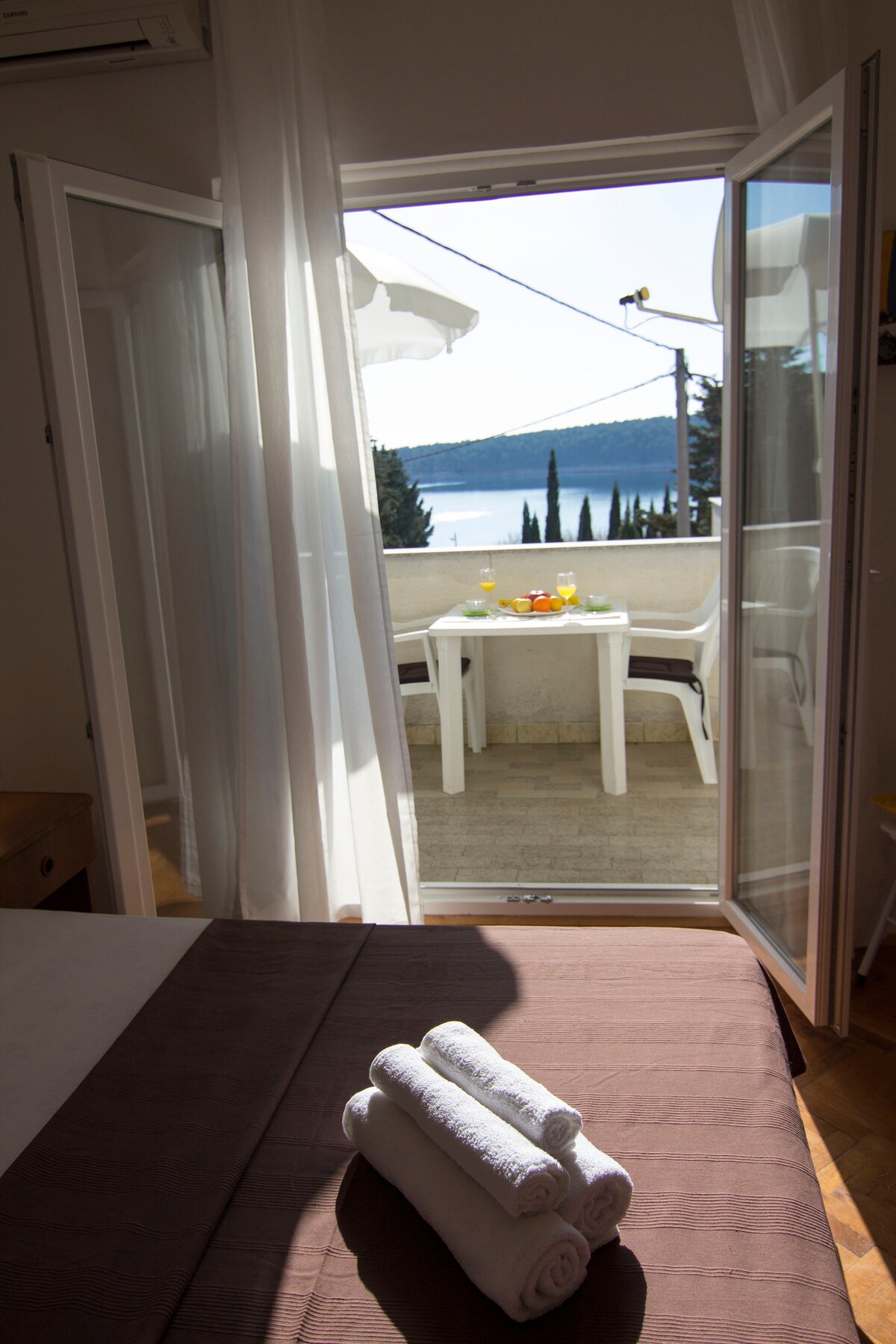 Mətbəxi olan studiya, dəniz mənzərəli balkon, ikinəfərlik çarpayı, hamam otağı, tualet, Wi-Fi və kondisioner şəraiti. Dəniz və çimərlik cəmi 50 metr məsafədədir. Çimərliyə, Barbat, Rab yaxınlığında 4 mənzilli ailəvi evimizdə yerləşir. Ətrafda bir neçə yaxşı restoran, pizza və bar və 2 supermarket. Dəniz kənarında gözəl gəzinti yolu 8 km məsafədə gəzinti və ya velosiped sürmək üçün idealdır. Uşaqlar və ailə üçün əladır. Mənim sevimli mum və nənə ev sahibliyi edir. Gəlin və adanı yerli sakin kimi araşdırın. Evin qarşısında ödənişli parkinq