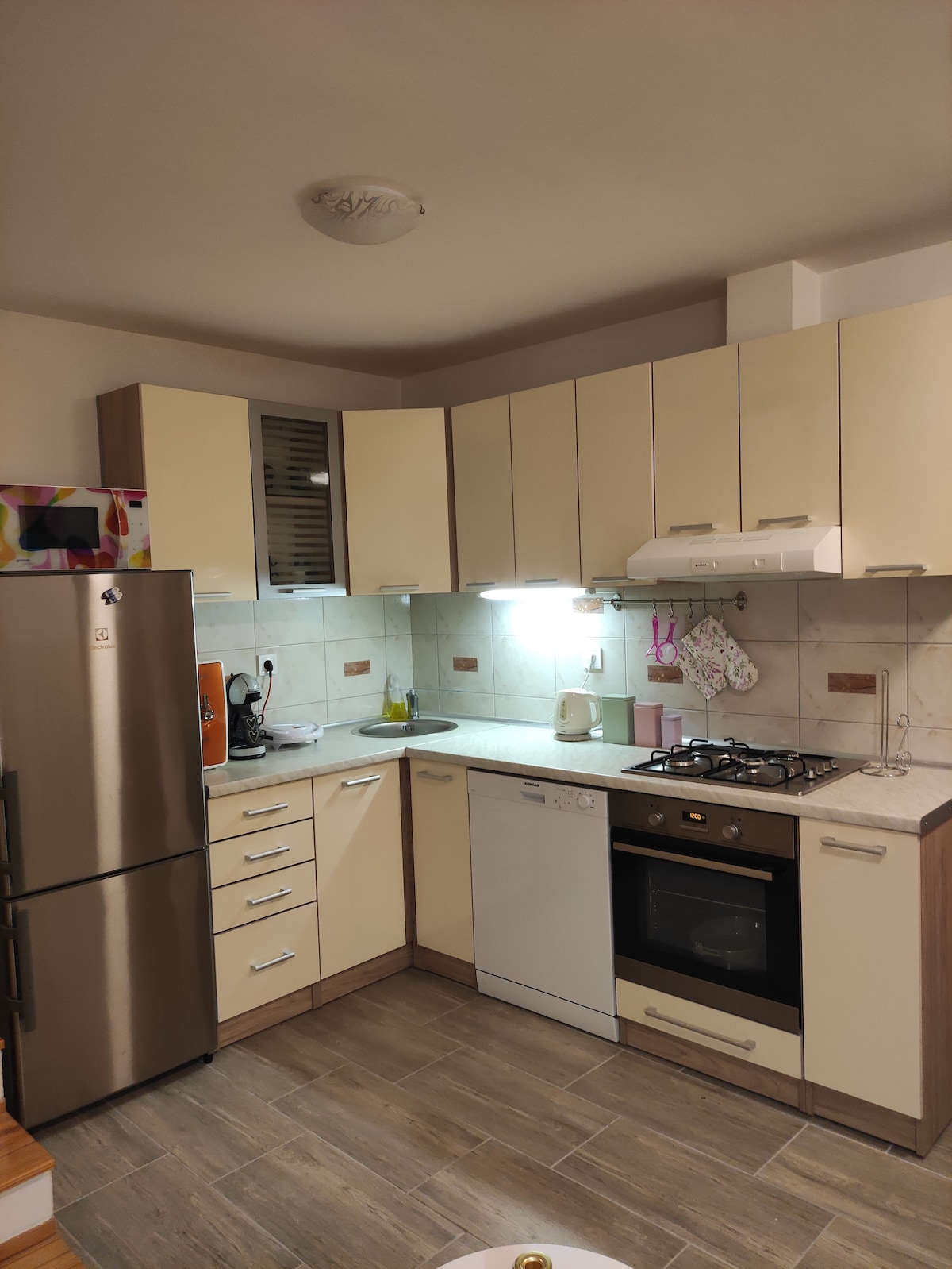 U prizemlju naše kuće su dvije spavaće sobe, kupaonica, WC, kuhinja i dnevna soba s izlazom na prednju terasu. Potkrovlje je otvoreni prostor s dnevnim boravkom i tri spavaća mjesta. U podrumu (konobi) nalazi se perilica rublja, dodatni stolovi i stolci te stolni nogomet. Iza kuće je velika terasa s vrtom i roštiljem. U neposrednoj blizini kuće je dućan prehrambenih namirnica i dva restorana. Lijepe plaže nalaze se 5 do 10 minuta vožnje automobilom, a sportaši mogu biciklirati i trčati.