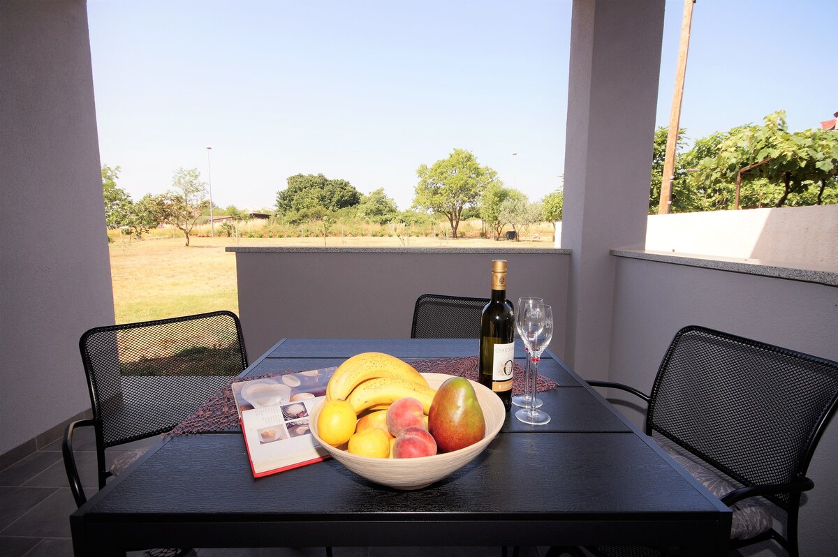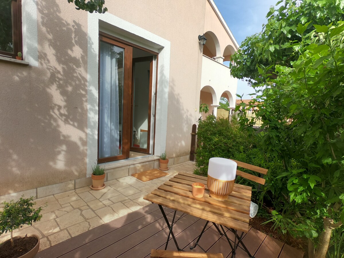 Yaxşı təchiz olunmuş və gözəl əl ilə bəzədilmiş mənzilimiz kiçik Fazana kəndində əla mövqeyə malikdir. Sizə lazım olan hər şey gəzinti məsafəsindədir: çimərlik, restoranlar, supermarketlər və s. Təmizlik, kondisioner və ya WiFi tutmuruq.