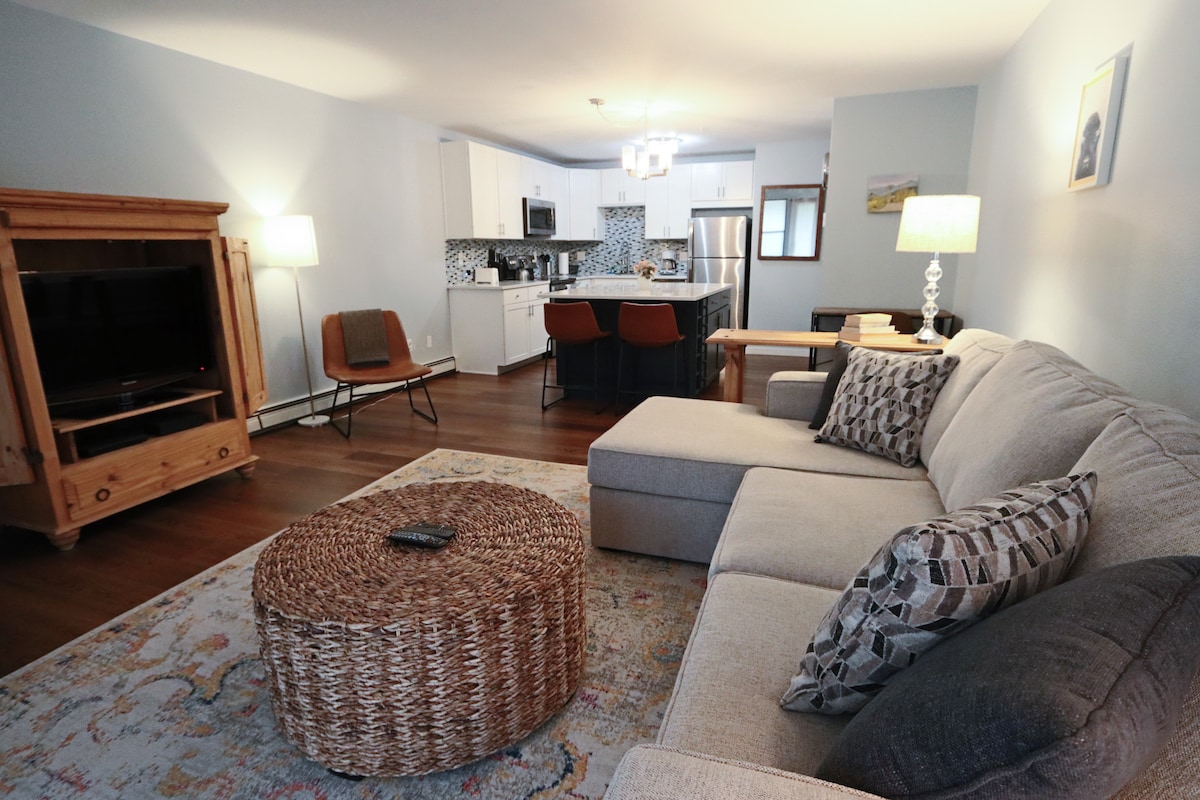 Contemporary vacation rental is located at the base of the winter park ski resort. Premier one bedroom with king bed. Sleeps 4. On third floor with access to bbq, BRAND NEW hot tub and fireplace. Enjoy an efficiency kitchen with stainless steel appliances. Self check in. License #005596