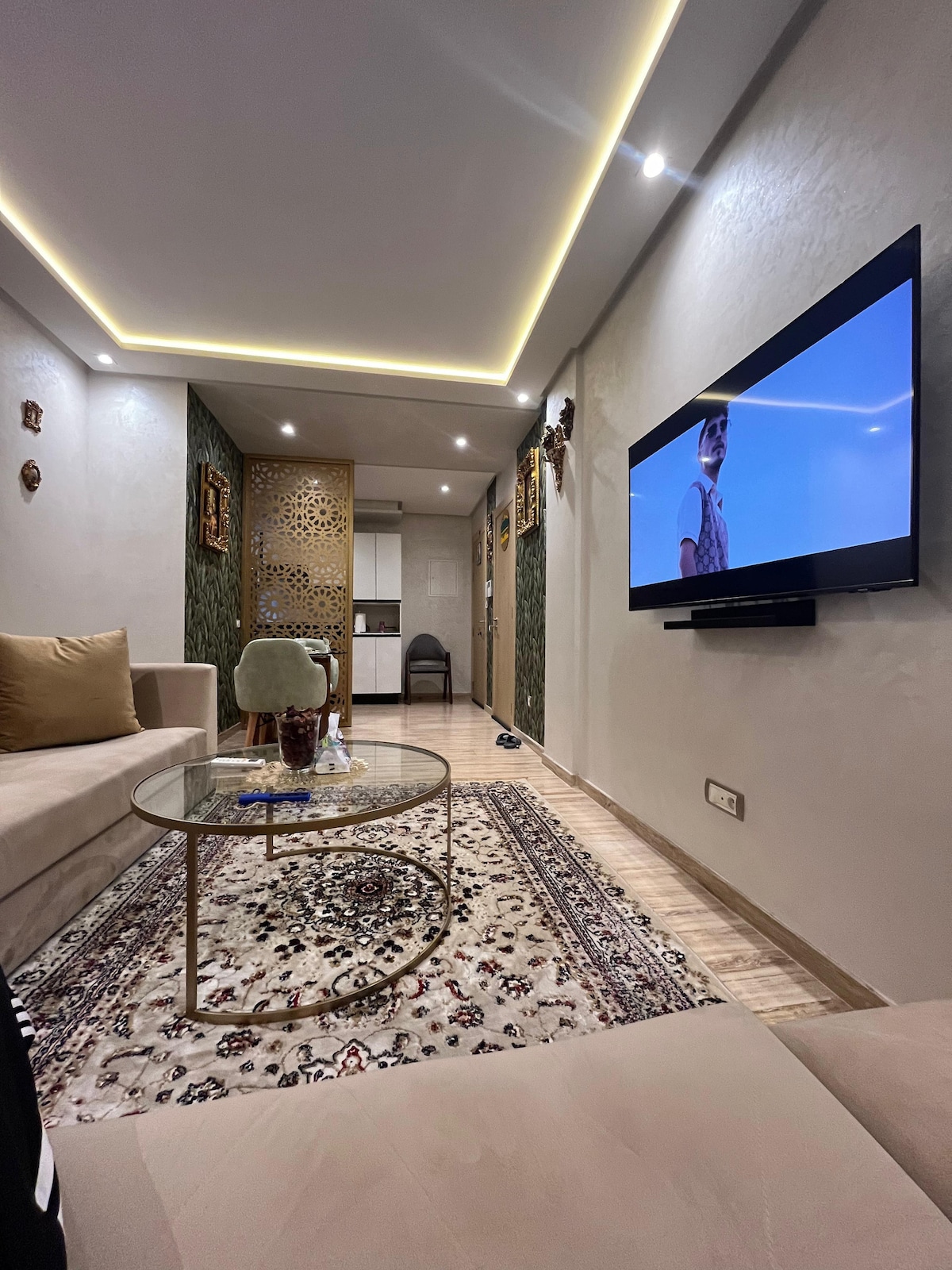 Bu məkan qərarlı şəkildə unikal üsluba malikdir. Teras və parkinqi olan bu 60 m²-lik mənzil Kasablankada Kornişin yaxınlığında yerləşir. 2020-ci ildə dənizə və mağazalara yaxın inşa edilmiş yeni yaşayış yerində Dəbdəbəli, tam təchiz olunmuş, yüksək texnologiyalı mənzil. Ailələr və ya işgüzar səfərlər üçün əladır. Mənzildə lüks mebellər var və özünüzü evinizdəki kimi hiss etməyiniz üçün diqqətlə bəzədilib. Bütün gigiyena qaydalarına peşəkarcasına əməl edilir.