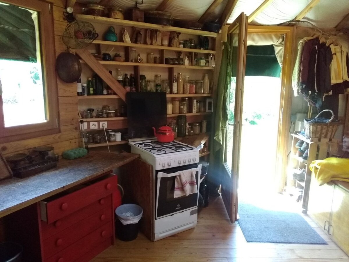 Təbiət qoynunda yerləşən gözəl cocuq. Bu təravətləndirici dairəvi yaşayış yerində bir gecə: Axşam ocağın yanında, səhər quşların səsi ilə oyanmaq İkinəfərlik çarpayı, klikləmə və əlavə döşək də əlavə çarpayı kimi istifadə edilə bilər. Qeyd edilməli məqamlar: quru tualet və isti su yoxdur (lakin narahat olmayın, günəş enerjisi ilə işləyən duş və vannadan istifadə edə bilərsiniz) Döşəkağılar təmin edilməyib İl boyu bu alaçıqda yaşayıram və heç vaxt üşüməmişəm. Odun sobası çox səmərəlidir
