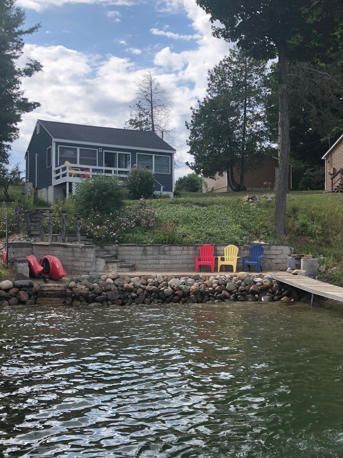 Göldən gözəl "yuxarı" gölkənarı kottec pillələri və şam ağacları ilə əhatə olunub. Möhtəşəm mənzərələr! Gözəl mebel və dekorasiya. Gözəl mətbəx, qonaq otağı və yemək sahəsi, eləcə də möhtəşəm göl mənzərəli bütün mövsüm eyvanı olan döşəmə planını açın. 3 yataq otağı və 1,5 hamam otağı. Paltaryuyan/qurudan maşın daxildir. Həftəlik (Günəş - Günəş) icarələr üçün iyun ayının ortalarından Əmək Gününə qədər tələb olunur. İlin qalan hissəsi üçün minimum iki günlük icarələr tələb olunur.