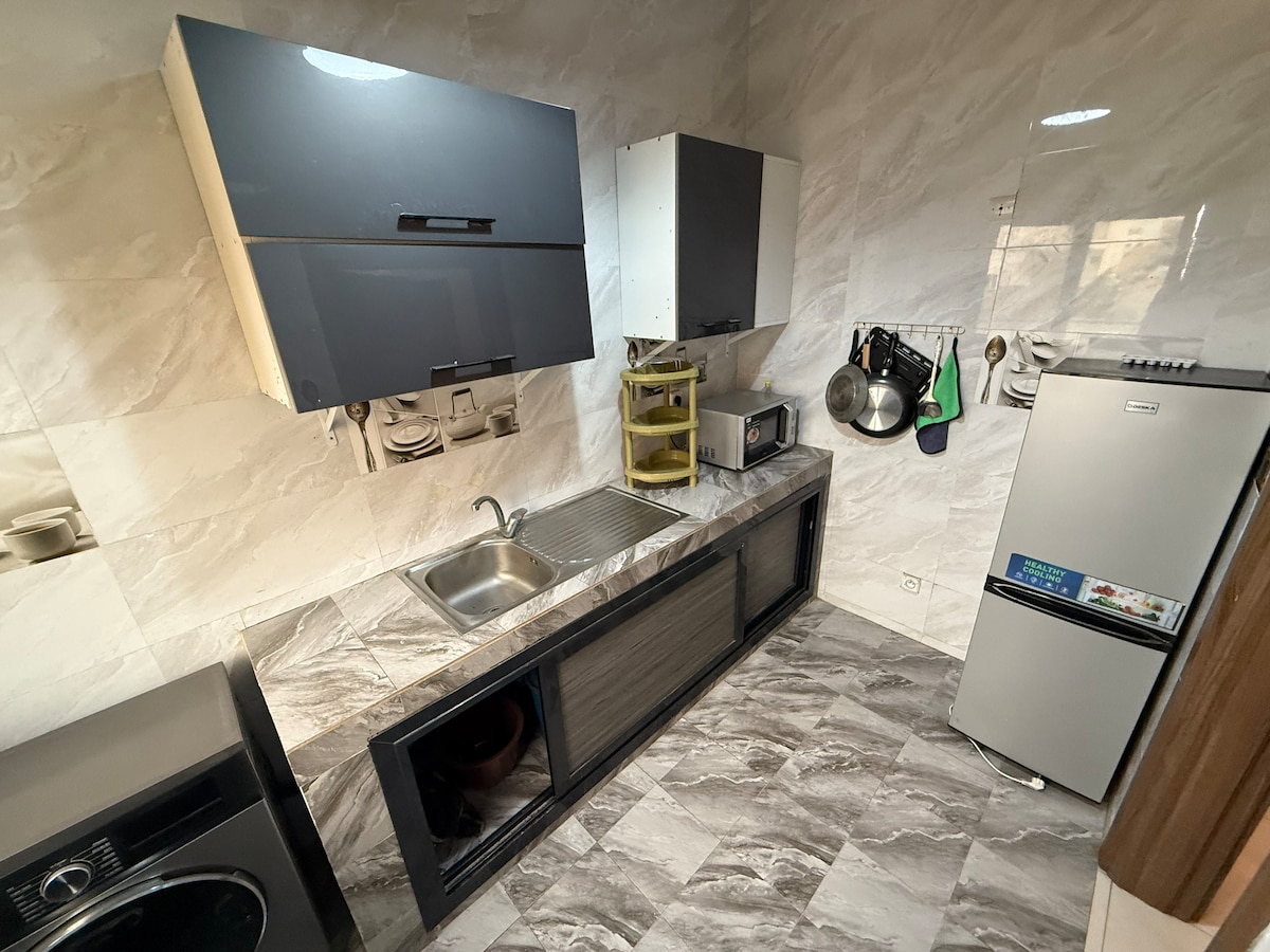 Noflaay Suites-də stressiz və sakit bir qonaqlama yaşayın. Bu peşəkar mebellə təchiz edilmiş və bəzədilmiş üç yataq otaqlı mənzil Amitié-Point E-nin çox tələb olunan məhəlləsində yerləşən, arzuladığınız bütün imkanları təklif edir. Paylaşılan çoxməqsədli otağa, fitnes mərkəzinə, rezervasiya edilmiş yeraltı parkinqə və gecə-gündüz təhlükəsizliyə girişdən zövq alın.