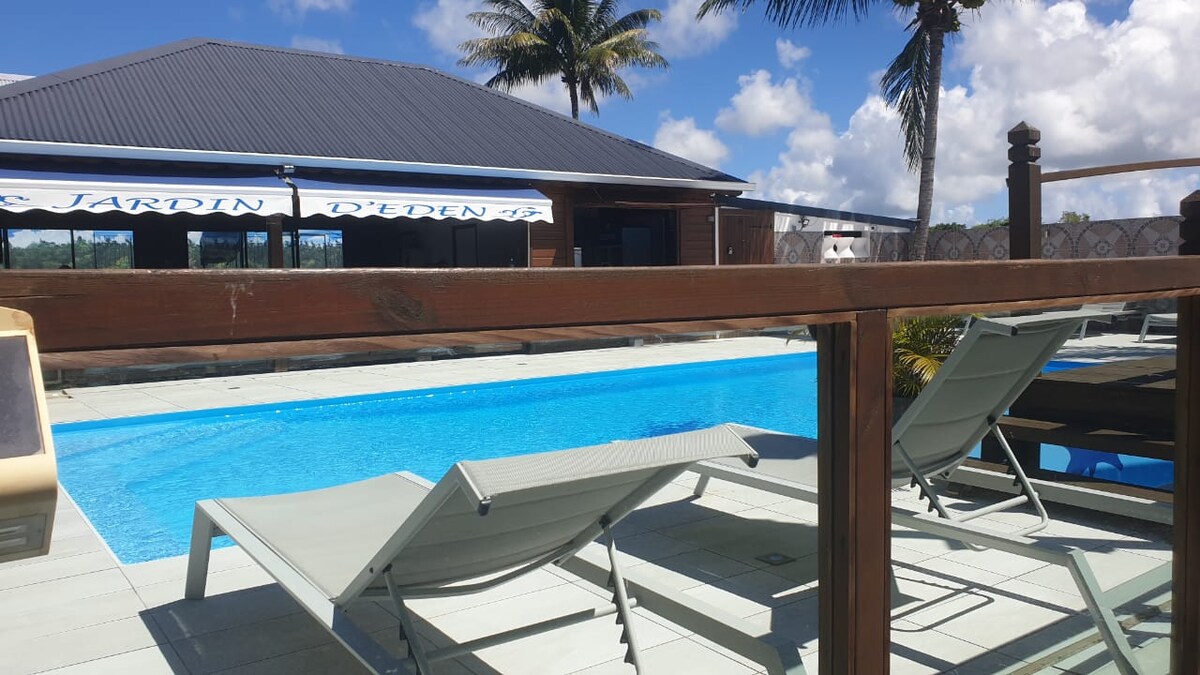 Rahat və təravətli bir yer axtarırsınız? Rahat kiçik kondisionerli ev, işıqlı və tam təchiz olunub. Ticarət küləkləri ilə havalandırılan sakit bağı olan Kreol fermasında yerləşir. Üstəlik: aperitif, oxu fasilələri və ya günəş vannası qəbul etmək üçün terras Cütlüklər və ya tək səyahətçilər üçün idealdır (ehtiyac olarsa, divan çarpayısı uşaq üçün uyğundur). *** COVID19 epidemiyası ilə bağlı bütün sağlamlıq tədbirləri təhlükəsizliyinizi təmin etmək üçün hazırdır.