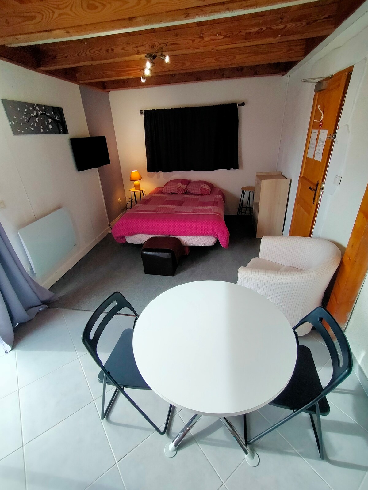 Arrivée autonome logement paisible et central avec extérieur ombragé et agréable Situé en pleine campagne attenant à la ferme familiale À quelques kilomètres de romans sur Isère simple mais agréable et extrêmement silencieux et calme Cuisine équipée avec plaque induction et four traditionnel et four micro ondes Un lit 140 et un canapé pouvant servir de lit d'appoint Logement couvert par le wifi sans soucis (fibre) Présence aussi d'un canapé vintage en bois.
