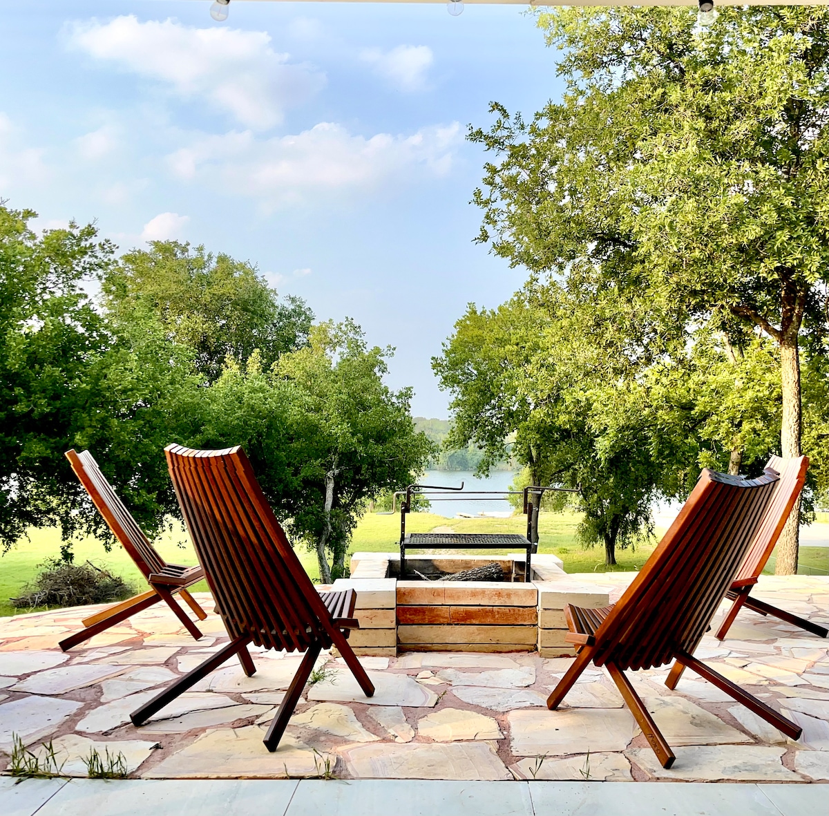Chill on your deck at night soaking in the beauty of the sun setting over the lake, & marvel at the "firefly" solar lights in the tree illuminating your private nature sanctuary. Relax in your private hanging tree hammocks, or have some fun on the water and rent ON-SITE kayaks, paddle boards, or canoe. Rejuvenate with a private yoga, personal training, or massage session? We are a 4 minute walk to Stonehouse Vineyard winery, and just up the road from Krause Springs spring-fed swimming hole!