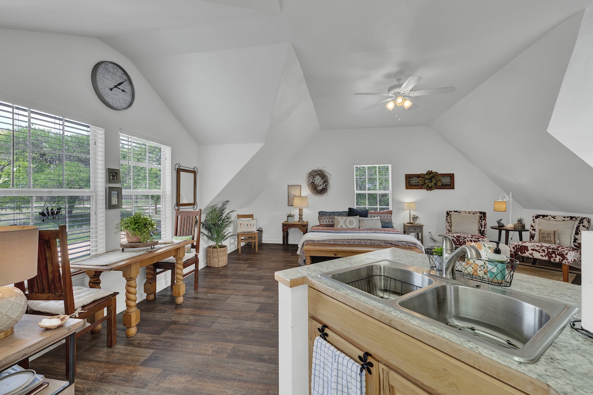 Spotted Sheep Farms is located on 8 private acres and features two separate properties. The Villa at Spotted Sheep Farms, an Italian style 1,800 square foot home with beautiful finishes and a luxurious huge master suite. The property is home to animals and wild life including alpacas, miniature donkeys, and of course, spotted sheep! It’s perfect for a getaway, relaxing, enjoying some of Texas' best wineries, Fredericksburg shopping and the quiet evening in the hot tub.