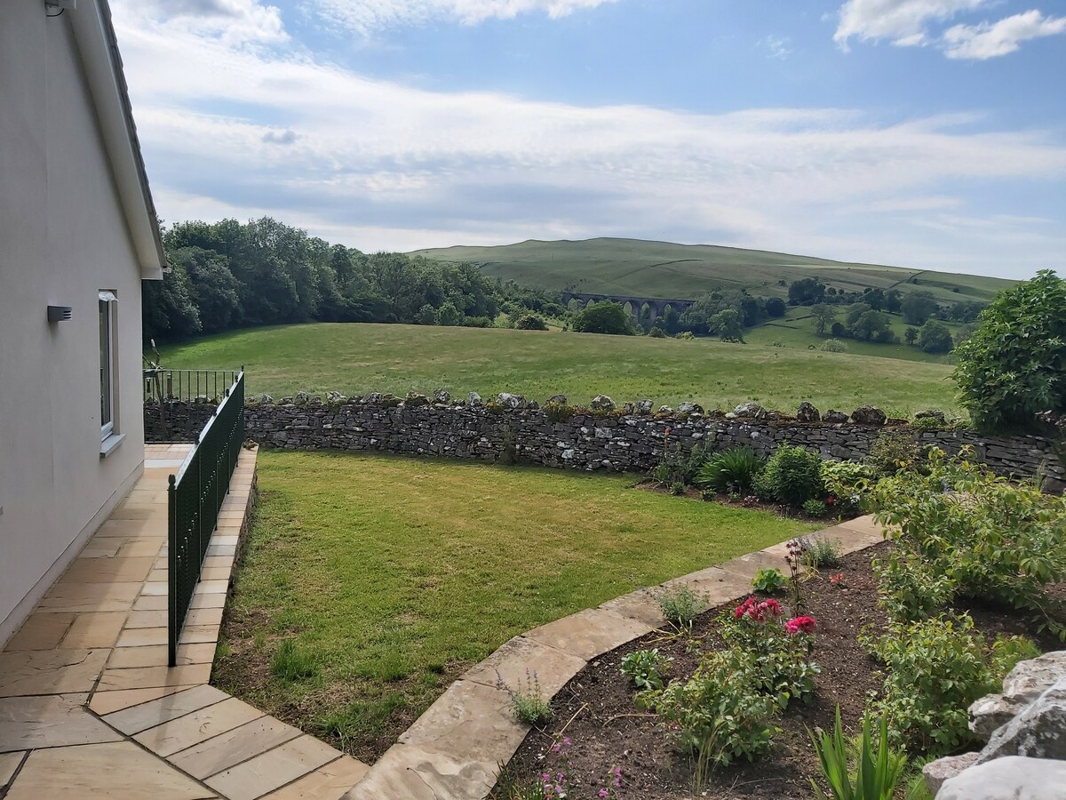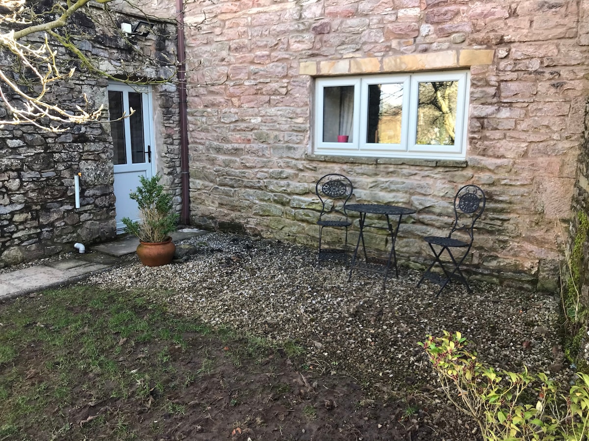 2 miles from Kirby Stephen, annexe to the main house with own entrance and use of garden in front of the property, outdoor seating. Own front door and a small porch area . We welcome dogs to stay. Bathroom with step into the large shower and non slip mat available , a living and kitchen area with a comfy sofa, table and chairs and a cooker and hob ( no cooker extractor) microwave and fridge. A door leads off the living and kitchen area to a bedroom with double bed and wardrobe.
