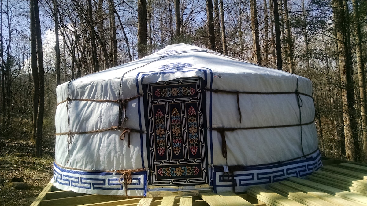 Bu, bir növ təcrübədir. Ulduzlara açılan tavan pəncərəsi olan orijinal Monqol alaçıqları! Əl ilə boyanmış gözəl rənglər və dizaynlar. 16 fut diametrində, 4 nəfər rahatlıqla yata bilər. 1 çarpayı 135-179 sm və iki tək çarpayı var. Masalar və stullar olan taxta terras. İsti duşlar və təmiz hamam otaqları, qapalı idman zalı, tennis kortu və voleybol. Smorlar və yemək bişirmək üçün od çuxuru/qril. Yurtada istilik və rahatlıq üçün izolyasiya/isitmə sistemi var. Reiki enerji işi/meditasiya (qəbul ilə). Müqəddəs labirintdə gəzin və özünüzü buraxın!