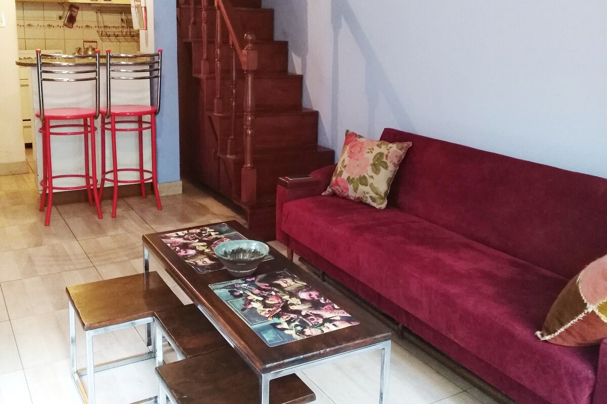 Modern, brand new vintage style Loft in the heart of Palermo, designed on three levels, with a bright window, Includes free Bicycle Service during your stay. Queen box spring bed, 50”60 channel TV, chromecast (netflix, youtube, smart tv) fiber optic internet, super fast, space to work with a laptop, living room chesterfield leather armchair, plus sofa bed. Full bathroom. Kitchen fully equiped.