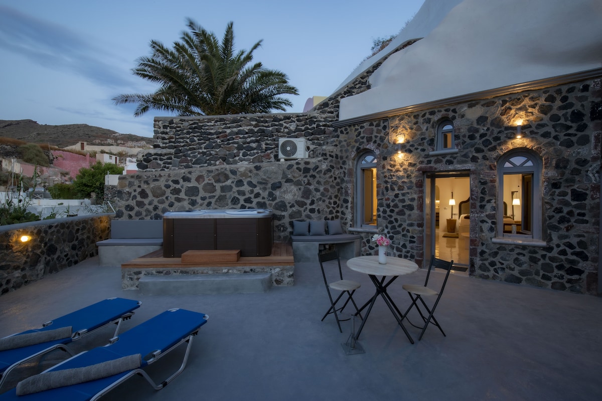 Pozulmamış kənd məkanının orijinal təcrübəsi. 1900-cü ildə çevrilmiş samanlıq XVI əsrin tarixi kəndi olan Potamosda yerləşir. Əsas meydanda, kilsəyə və kəndin şəhər bələdiyyəsinə baxan dinc 2 hektar fermada gizlənib. Onun quruluşu tamamilə tavanda açıq şüalar olan daşdan hazırlanıb. Kənardan zövq almaq üçün şüşə divar təbiətə tam açıla bilər. Küydən hələ uzaqda, kənd mərkəzindən cəmi 5 dəqiqə, dənizdən isə 7 km məsafədədir.