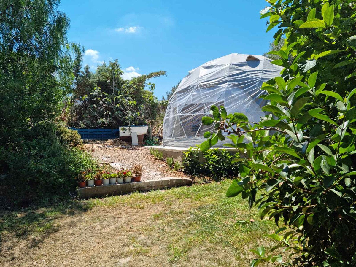 Glamping Dome tent with private swimming pool and large exclusive garden area. Only 40 meters from the sea and Location only 8 min from airport 30 min from Athens by car. NOT suitable for parties, please don't send inquiries