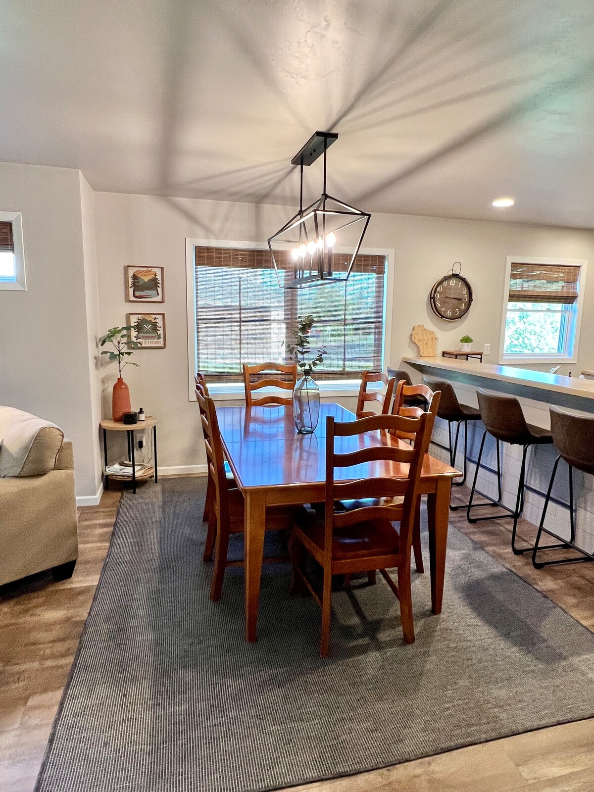 Location and one of a kind design! Beautiful 2000 sq. ft. 2nd floor walk up (26 stairs). Professionally decorated condo with custom touches throughout, has 15 ft. ceilings and is very spacious. In the middle of it all on the main avenue in downtown Sturgeon Bay we are just steps from restaurants, bars/pubs, shopping, theatre, music venues and the water front. This sunny space with 3 fireplaces and many amenities is the perfect place for your getaway. Max 10 ppl. No parties. Permit #35562284.
