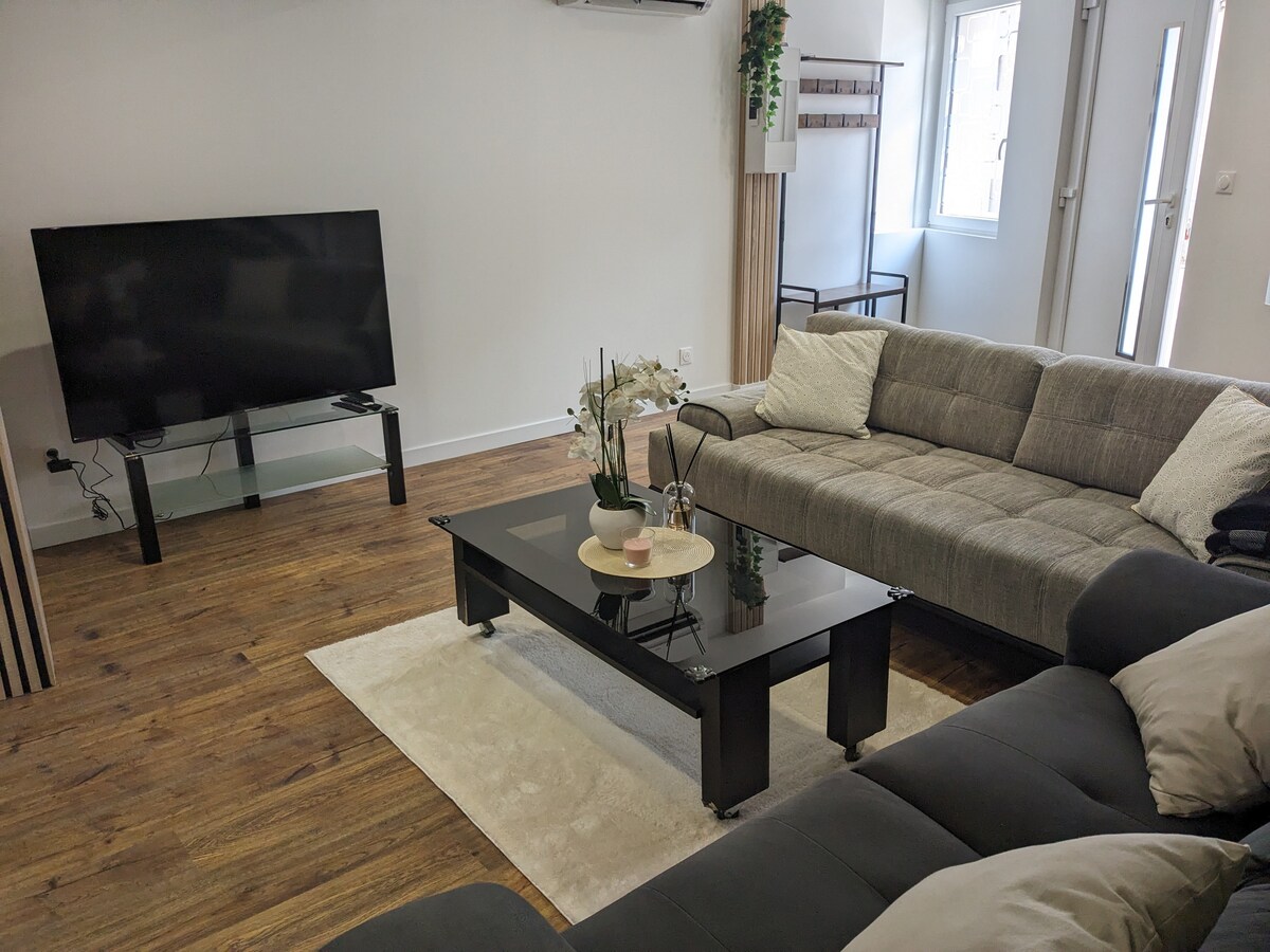 Ancienne bâtisse du XVIIIᵉ siècle restaurée avec soin, la maison allie charme de l’ancien et confort moderne. Spacieuse et chaleureuse, elle accueille jusqu’à 10 personnes tout en préservant l’intimité de chacun. Il y a tout l’espace nécessaire pour créer de beaux souvenirs ensemble. Ses murs en pierre gardent la fraîcheur. Le grand verger offre de nombreux loisirs (pétanque, ping-pong, trampoline). Un lieu idéal pour se retrouver et se ressourcer en famille ou entre amis. Vous allez chavirer