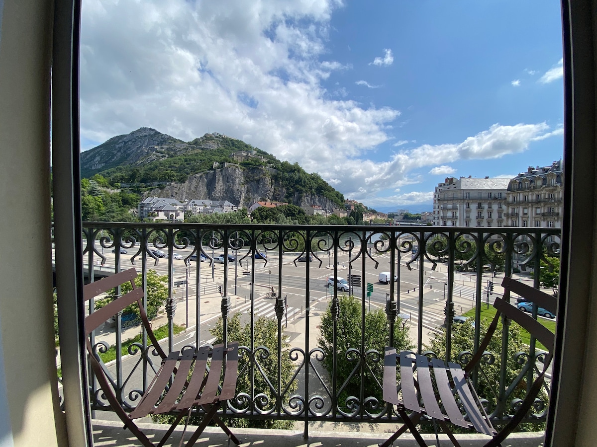Mövqe 1: Stansiyadan 5 dəqiqəlik piyada məsafədə, GEM-dən 8 dəqiqəlik məsafədə, məşhur kanat yolundan 3 dəqiqəlik məsafədə, hipermərkəzin qapılarında Kondisionerli, 6 nəfərlik ideal mənzilimə xoş gəlmişsiniz Haussmann binasının lifti və balkonu olan 3-cü mərtəbədə qonaqlamanız zamanı divanınızdan Qrenoblun açıqcasına heyran ola bilərsiniz... 80 m2 tamamilə təmir edilmiş, onun ruhunu və xarakterini qorumaq mənim üçün vacib idi. Özünüzü evdəki kimi hiss etməyiniz üçün bunu təşkil etdim.