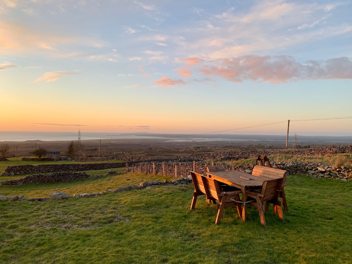 Xəyalpərəst Snowdonia Den-də hər şeydən uzaqda rahat istirahətdən zövq alın. Rhosgadfan & Carmel kəndləri arasında zövqlü 1-ci mərtəbə, yüngül və havalı özünə məxsus studiya mənzili. Öz şəxsi bağınızdan dağlara və sahil xəttinə açılan panoramik mənzərələri ilə özünüzü əhatə edin. Romantik fasilə və ya de-stress gəzintisi üçün idealdır. Uzaqdan hiss etmək üçün izdihamdan kifayət qədər uzaqda, lakin Llyn Peninsular və ətraf ərazilərin kəndlərinə və şəhərlərinə asan giriş imkanı. Reçarj edin və canlandırın!