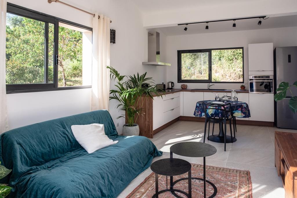 Salam, Ajaccio (Salario) yüksəkliklərində yerləşən təmirli kiçik qoyunlarımı salamlayıram. Sakitlik, istirahət və rahatlıq tapacaqsınız. Dekorasiya, ağac, daş və orijinallığa görə, ümid edirəm ki, bu sülh sizin gözləntilərinizə uyğun yaşayacaq və mənim üçün olduğu kimi xoş olacaq. Ajaccio şəhərinin möhtəşəm çimərliklərindən, qaniçən yoldan və bütün növ mağazalardan 5-10 dəqiqəlik məsafədə olacaqsınız. Tezliklə görüşərik! Odri