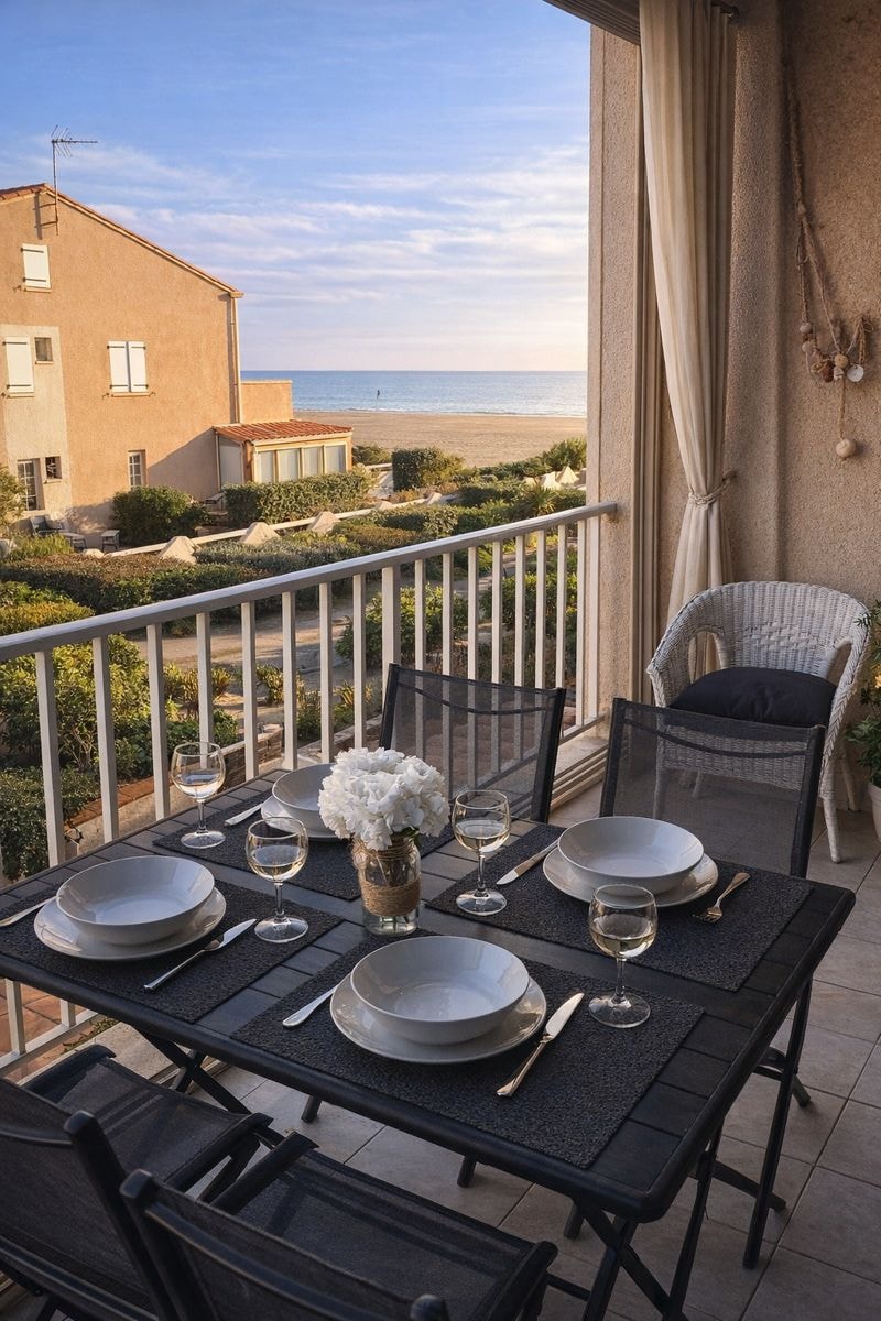 3 otaqdan ibarət, balkonlu tam təmirli, Aralıq dənizinə açılan nəfəskəsici mənzərəli, çimərliyə birbaşa çıxışı olan böyük mənzil, piyada bütün imkanlar. Avadanlıq: qabyuyan maşın, paltaryuyan maşın, pulsuz Wi-Fi, televiziya. Velosipedlər və ya dəniz materialını saxlamaq üçün 13m2-lik böyük çardaq... yaşayış yerinin ətəyində ayrıca parkinq. Ağıllı kilid və klaviatura ilə öz-özünə giriş