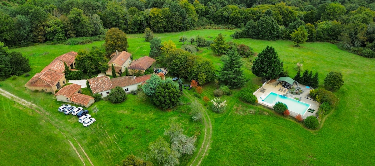 Bienvenue au coeur du Périgord, bienvenue au Mongeat, une ancienne ferme de 7 hectares, un petit océan de verdure en pleine campagne. Le Mongeat est un havre de paix situé en haut d'une colline, avec vue dégagée sur la campagne, sur les couchers de soleil. Un petit paradis pour des vacances au plus près de la nature, pour les amoureux des chevaux... Le lieu idéal pour arrêter le temps, pour déconnecter, contempler, mais aussi le lieu idéal pour partir à la découverte des joyaux du Périgord...