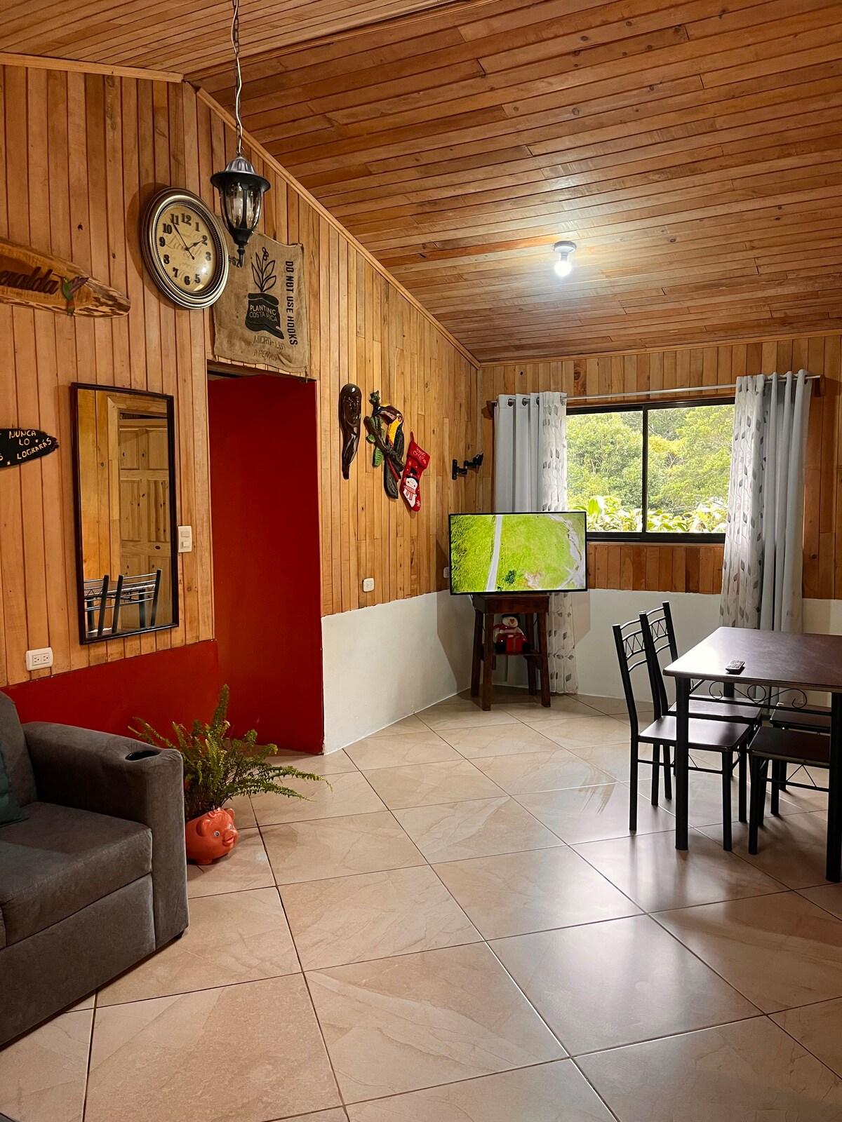 Bu geniş və sakit məkanda narahatlıqlarınızla əlaqəni kəsin. Təbiətlə əhatə olunub. Gözəl mənzərələri, bütün imkanları, cakuzisi, vannası və buxarısı olan sakit məkan. Bura şəhərin xaosundan ayrılmaq üçün mükəmməl bir məkana çevriləcək. Xuan Santamariya Hava Limanı - avtomobillə 30 dəqiqə Poas Volcano- maşınla 40 dəqiqə Sülh Lojası Şəlalə Bağı maşınla-30 dəqiqə Vara Blanka - maşınla 20 dəqiqə Alajuela şəhər mərkəzi - maşınla 20 dəqiqə San-Xose Centro - maşınla 1 saat.
