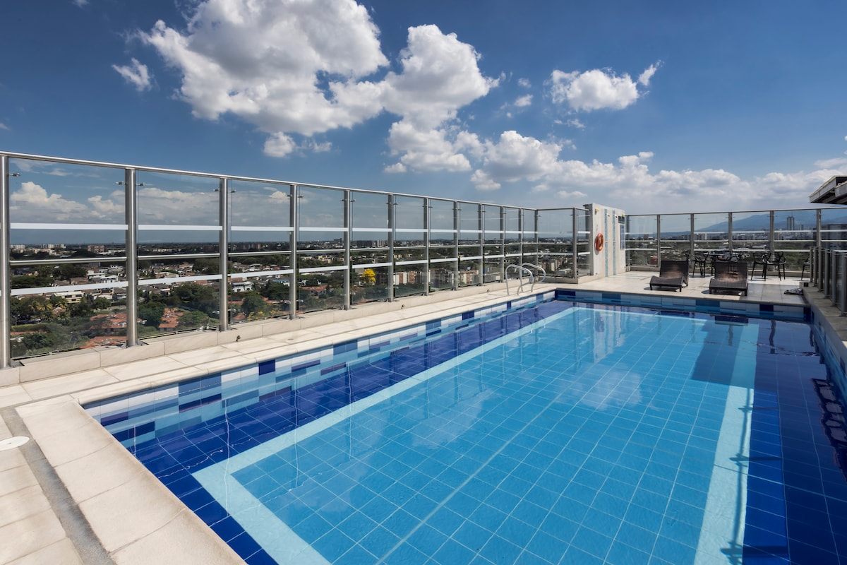 Gözəl Kali, Cerro de las Tres Cruces və Cristo Reyin panoramik mənzərələri ilə penthausumuzdan Kalinin füsunkarlığını kəşf edin. İsti cakuzidə dincəlin, böyük çöl otağından zövq alın. Hava limanının yaxınlığında ideal mövqeyə, Çipiçape ticarət mərkəzinə, restoranlara və gecə həyatına sahib olan bu sakit məhəllə Sultana del Valle şəhərindəki qonaqlamanızdan zövq almaq üçün mükəmməl bir yerdir.