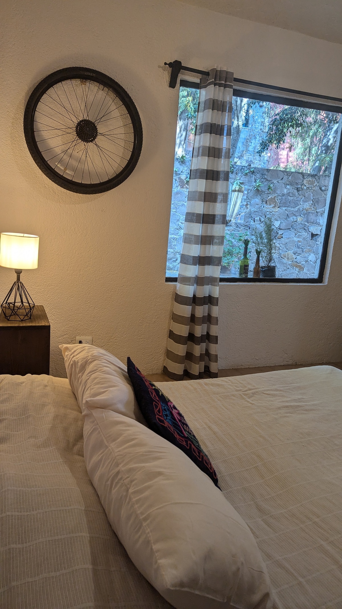Quanaxuatonun mərkəzində tarixi və rəngarəng Tekolote-də mükəmməl bir şəkildə yerləşən sakit bir PİYADA küçəsi bol restoran, bar, teatr və fəaliyyətlərdən cəmi bir neçə dəqiqəlik məsafədədir. Bu mənzil inanılmaz MƏNZƏRƏLƏR, gözəl köhnə dünya füsunkarlığı və müasir şəraitlər təklif edir. Balkon rahat yaşayış/yemək/mətbəx sahəsindən kənardadır, əylənmək və dincəlmək üçün əla məkandır. Ayrıca yataq otağında 2 şkaf və inanılmaz gecələr dincəlməyinizi təmin etmək üçün kifayət qədər rahat çarpayı var.