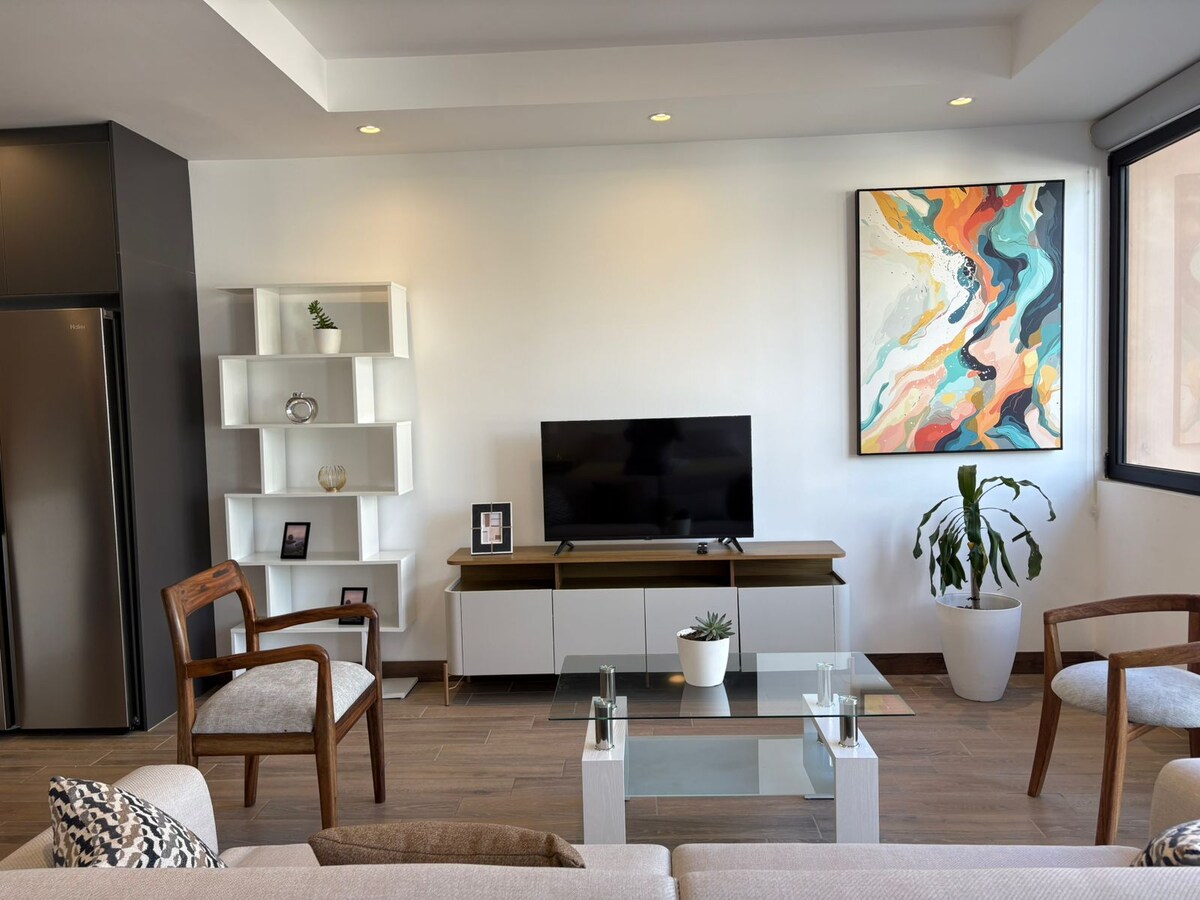 QUO Binasında yerləşən, istirahət və ya iş üçün ideal olan müasir və rahat mənzil olan Blue Skyline-a xoş gəlmişsiniz. Xoş şəhər mənzərəsindən və Cuatro Grados Norte, restoranlar, kafelər və korporativ ərazilər yaxınlığındakı, həmçinin 1-ci Zona və La Aurora Beynəlxalq Hava Limanından cəmi bir neçə dəqiqəlik məsafədə yerləşən strateji mövqedən zövq alın. Praktik qonaqlamalar və işgüzar səfərlər üçün mükəmməldir.