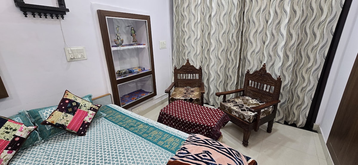 Rahatlıq və lüks üçün nəzərdə tutulmuş işıqlı, cəlbedici evə daxil olun. Səhər çayınızı balkondan günəşin çıxması ilə için və ya qonaq otağında sevdiyiniz filmlərlə dincəlin. *Bağlantı* Hava limanı və Dəmiryol stansiyası 3-4 km məsafədədir. Mehrangarh Fort 7 km. Umed Bhawan Palace - sadəcə bir addım uzaqda! *Məkan* Sizin rahatlığınız bizim prioritetimizdir, qonaqlama tam funksional mətbəx mikrodalğalı sobası, soyuducu, soba və krujeva ilə təchiz olunub. * Qonaqlama müddətində * Yerli mətbəxlərlə bağlı yardım etmək və gününüzü planlaşdırmaq xoşdur!