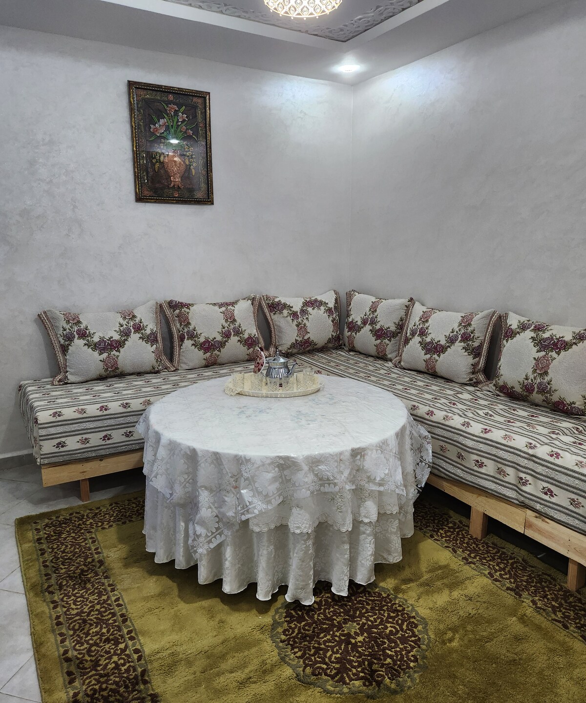 Oujda fakültədən və Çudan bir neçə dəqiqəlik məsafədə yerləşən parlaq, kondisionerli və tam təchiz olunmuş mənzil. Çox sakit, müasir, təmiz, rahat və təhlükəsiz şərait təklif edən ailəvi qonaqlamalar üçün idealdır Qonaqlama yerində şəxsi parkinqi olan xoş balkon, paltaryuyan maşın, televizor və rahat qonaqlama üçün lazım olan hər şey var. Döşəkağılar və dəsmallar təmin edilir. Məhəlləyə hörmət etmək üçün şənlik və şənliklər qəti qadağandır