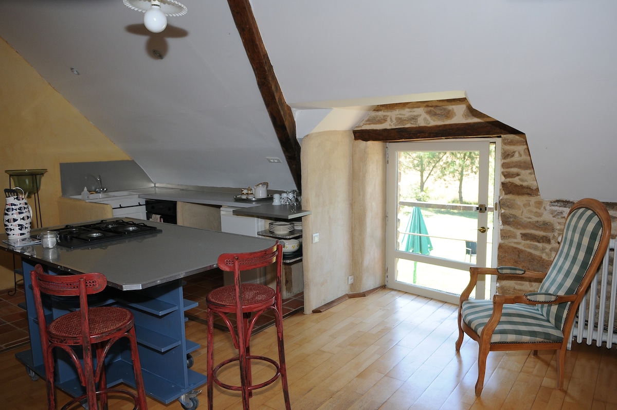 Deux logements disponibles, l'un pour 4 personnes et l'autre pour 3 personnes. Pour votre tranquillité et votre confort, si vous louez l'un des deux, l'autre ne sera pas occupé. Mon logement est au calme en pleine nature auprès de chevaux, jolie vue sur le soleil couchant. Vous pouvez profiter du sauna. Espace privatisé sur réservation. à 5 min. de la Roche Bernard, petit port touristique. Plages à 20 min. proche de la Brière, le golf du Morbihan, la côte de jade. Rénové de façon originale.